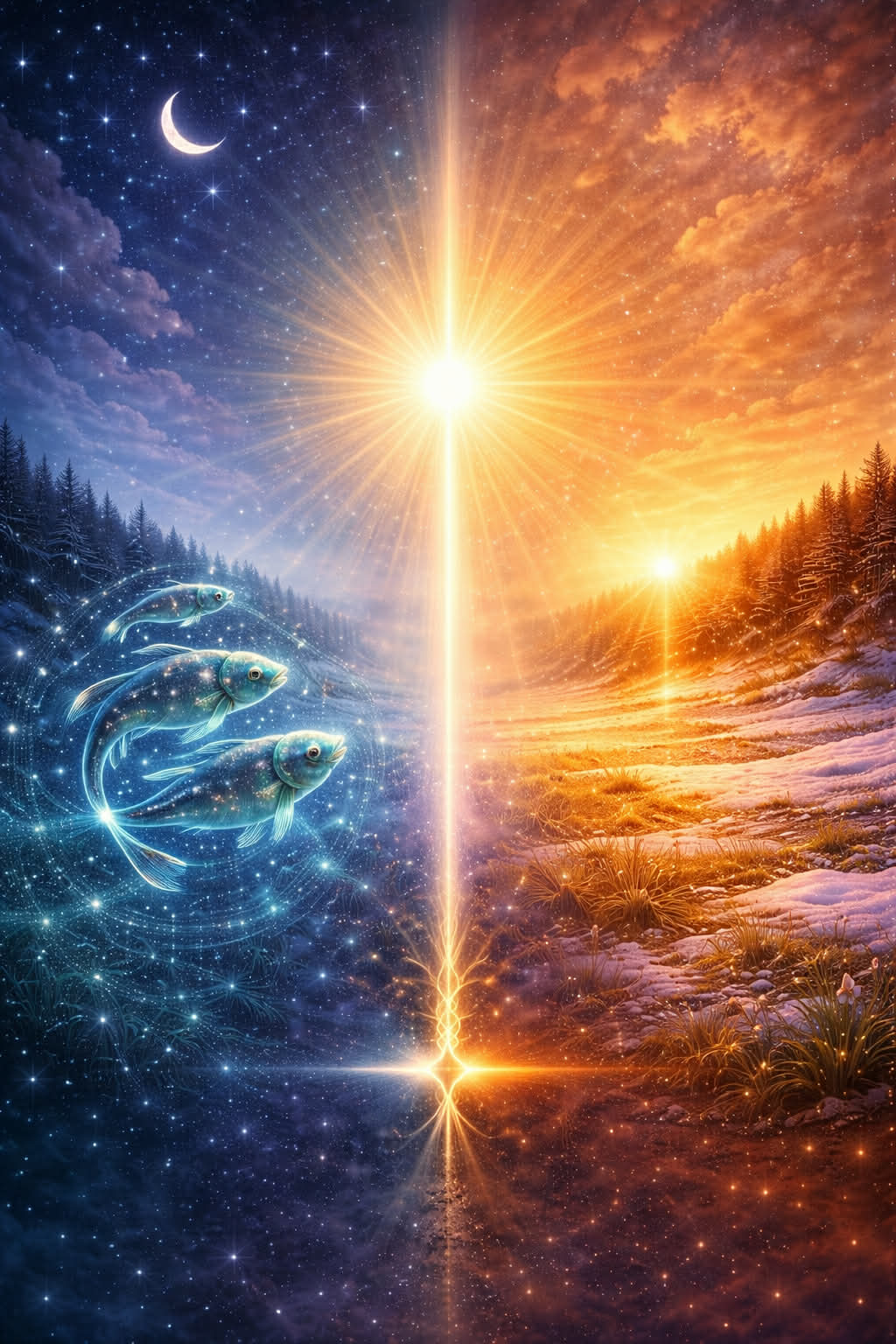 Maaliskuussa tapahtuu kaksi voimakasta kosmista hetkeä vain vuorokauden välein: Kalojen uusikuu 19.3. päättää yhden astrologisen syklin, ja kevätpäiväntasaus 20.3. avaa uuden.