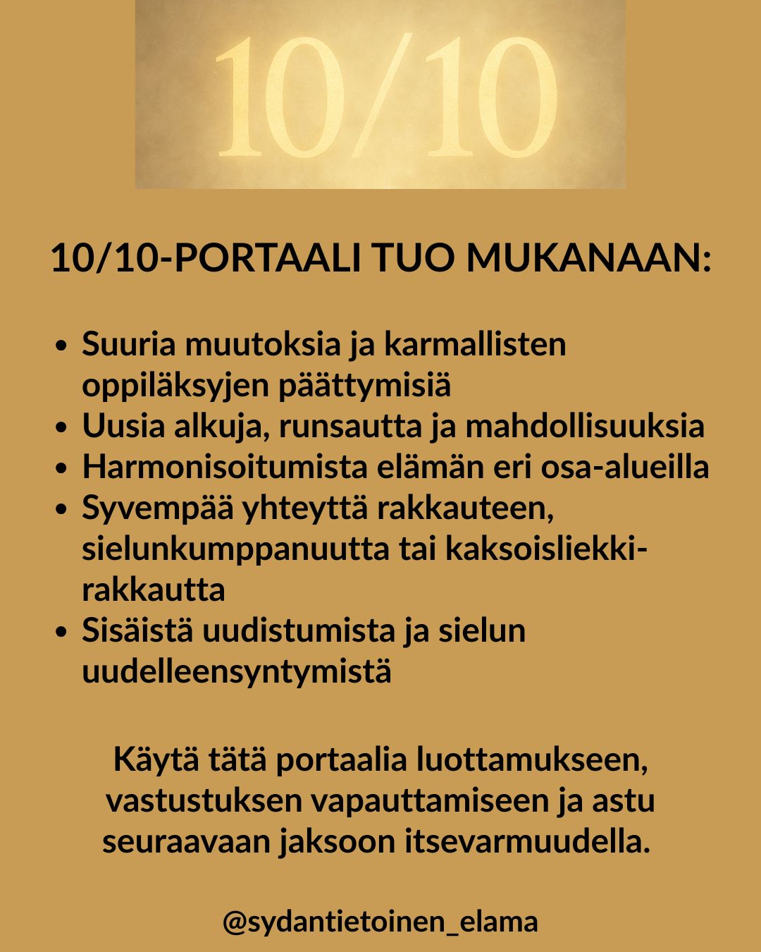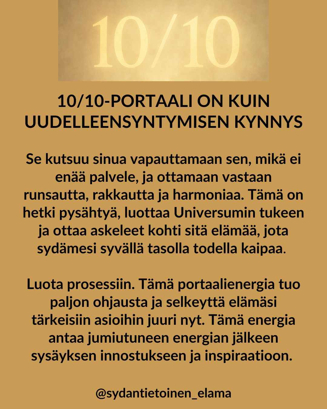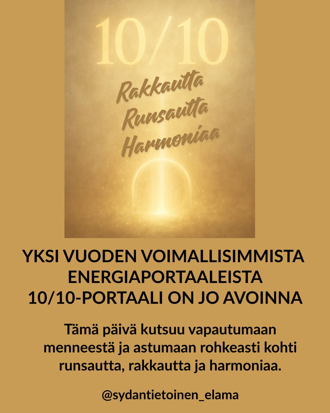 10.10. on yksi vuoden voimallisista energiaportaaleista. Tämä portaali on jo nyt avoinna, heti todella intensiivisen Oinaan Täysikuun ja runsaiden auringonpurkausten jälkeen.