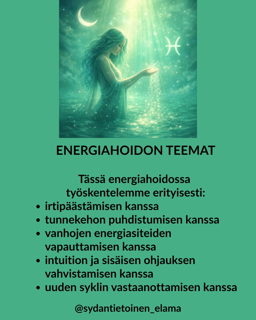 Tässä Kalojen uusikuun energiahoidossa työskentelemme erityisesti: