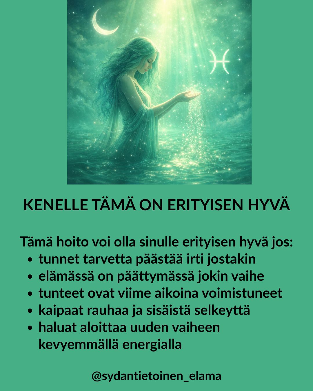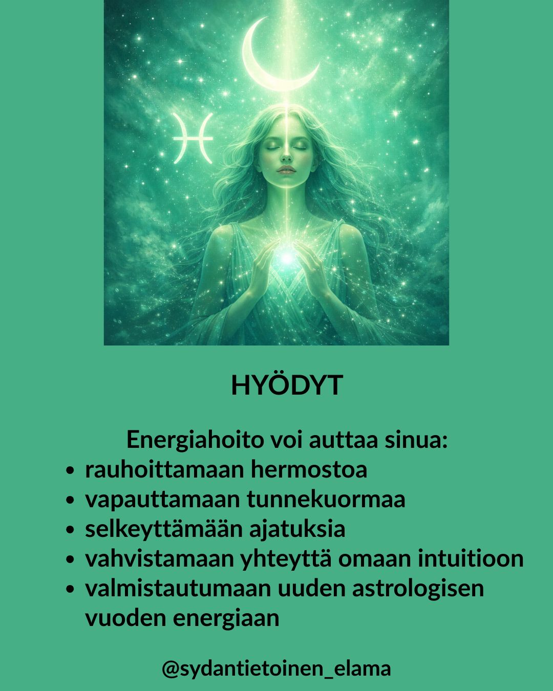 Näihin kahteen hoitoon voit osallistua myös yhteishintaan 33,33€. Jos tunnet kutsun tähän energiaan, olet lämpimästi tervetullut mukaan. Erillinen ostolinkki yhteishinnasta.