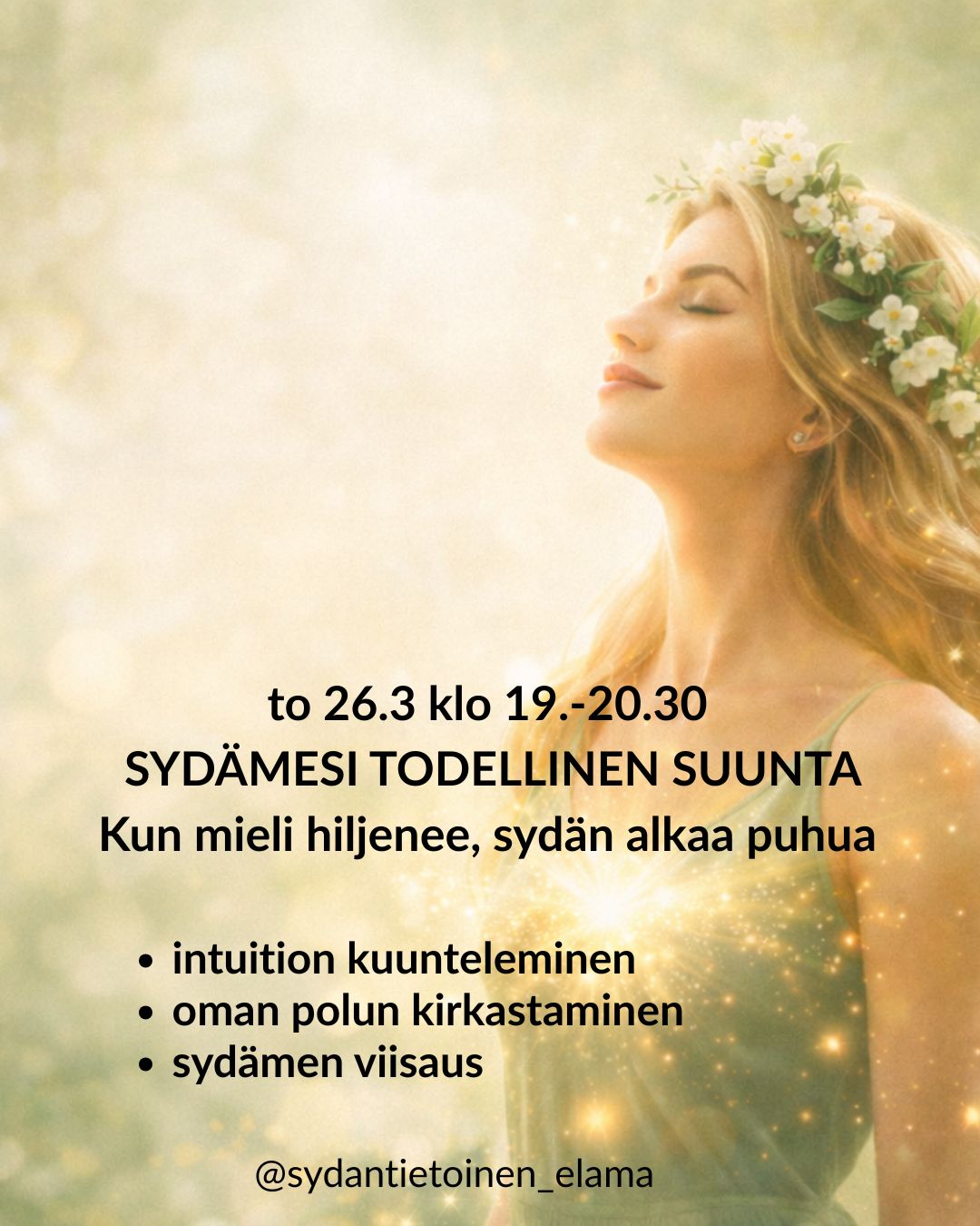26.3. klo 19-20.30 Sydämesi todellinen suunta - Kun mieli hiljenee, sydän alkaa puhua