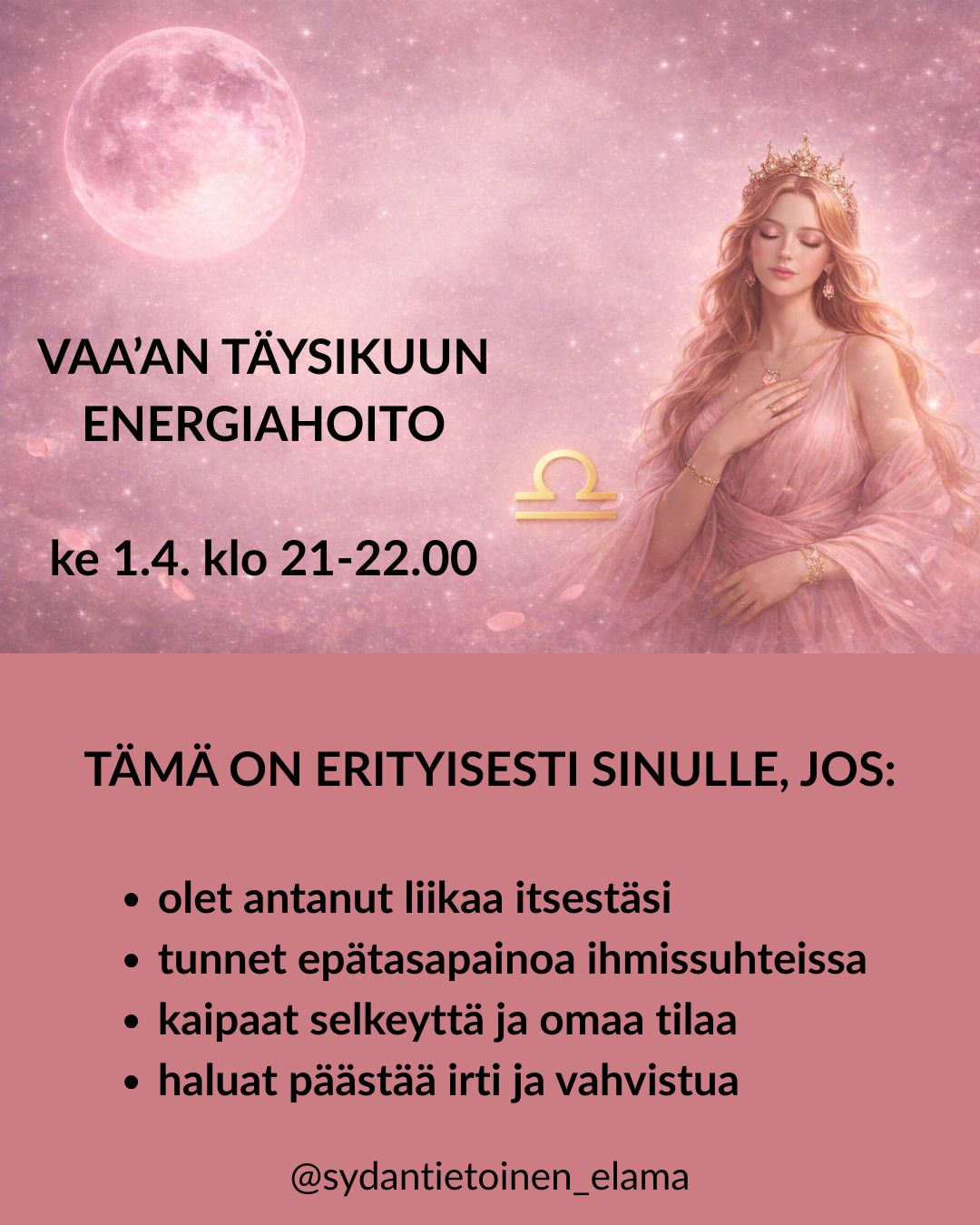 Tämä on hetki päästää irti, tasapainottaa ja palata takaisin omaan voimaasi.