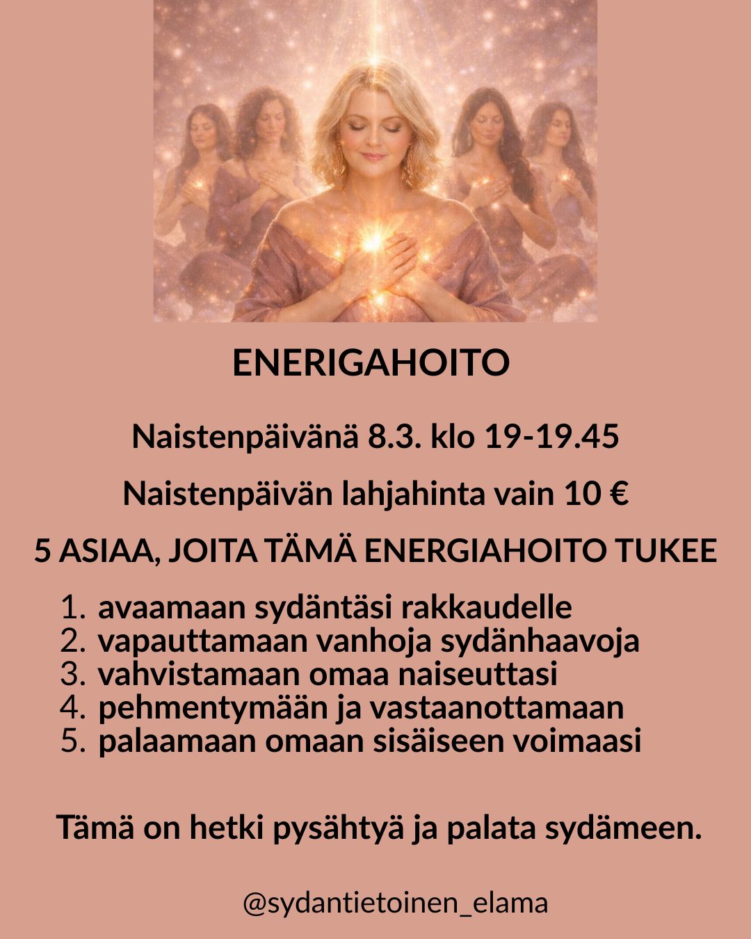 Naistenpäivän kunniaksi pidän yhteisen energiahoidon teemalla: