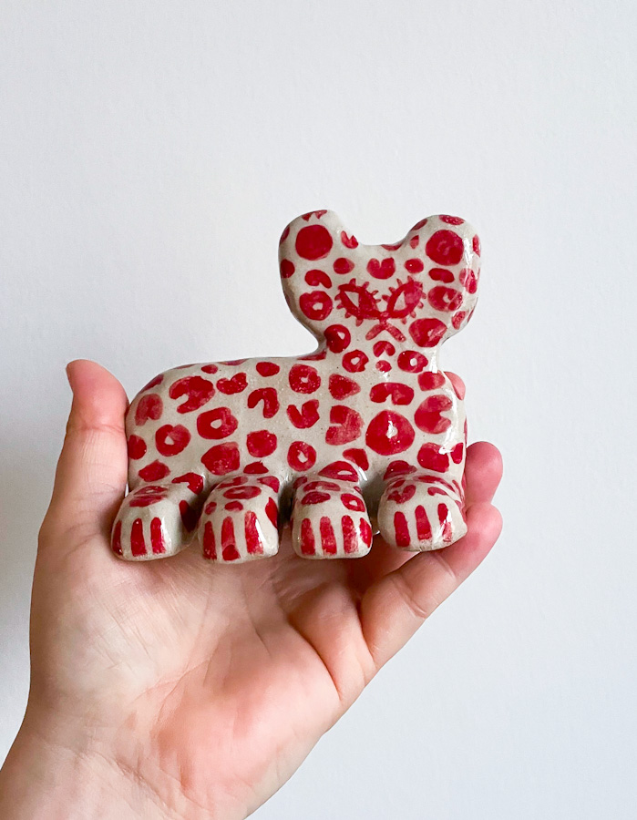🔴 Loikoileva punainen pantteri - keramiikka KOKO: 8 cm x 8 cm x 5.5 cm VENLA VAATTOVAARA 2022 Nouto: Helsinki ja Turku