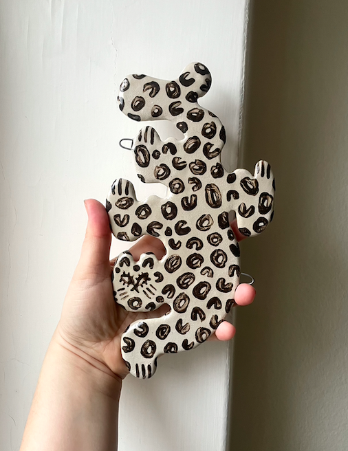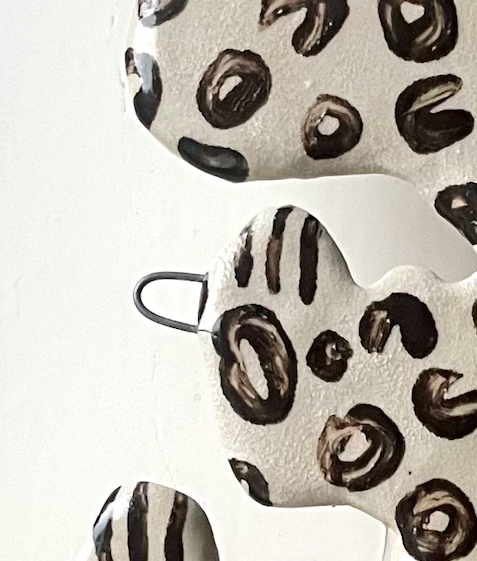 Seinäpantteri pilkullinen musta & luonnonvalkoinen Sivuissa 2 ripustuskoukkua KOKO: n 20 x 15 cm MUIJAVAARA 2022 Venla Vaattovaara