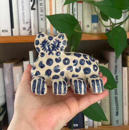 Loikoileva sininen pantteri - keramiikka KOKO: 8 cm x 8 cm x 5.5 cm VENLA VAATTOVAARA 2022 Nouto: Helsinki ja Turku