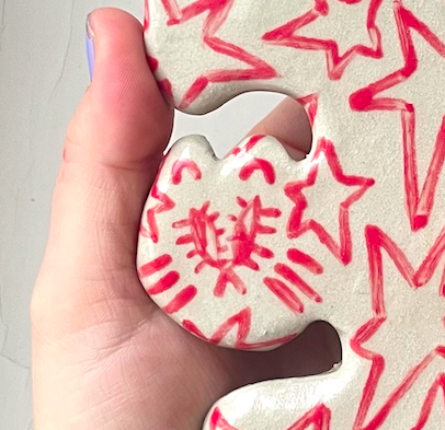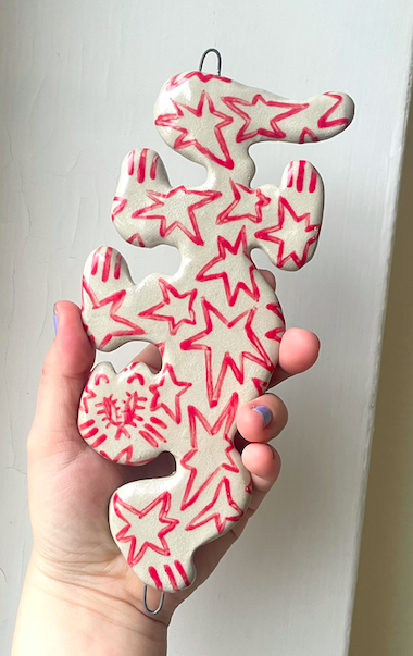 Seinäpantteri pilkullinen punainen ja luonnonvalkoinen tähtityttö Sivuissa 2 ripustuskoukkua KOKO: n 20 x 15 cm MUIJAVAARA 2025 Venla Vaattovaara