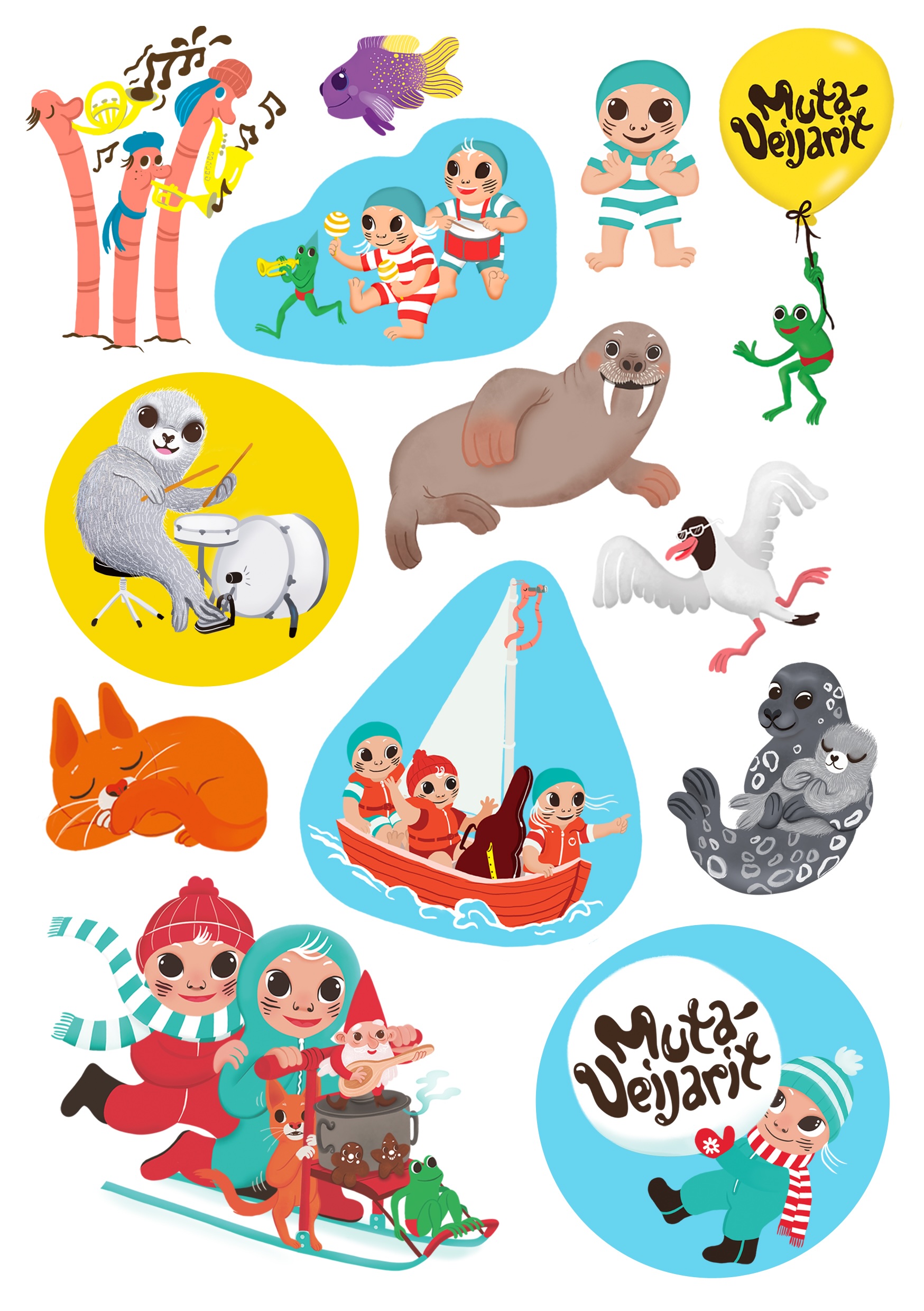Arkillinen hauskoja Mutaveijari-tarroja! A5 kokoinen arkki paperipäällysteisiä tarroja.