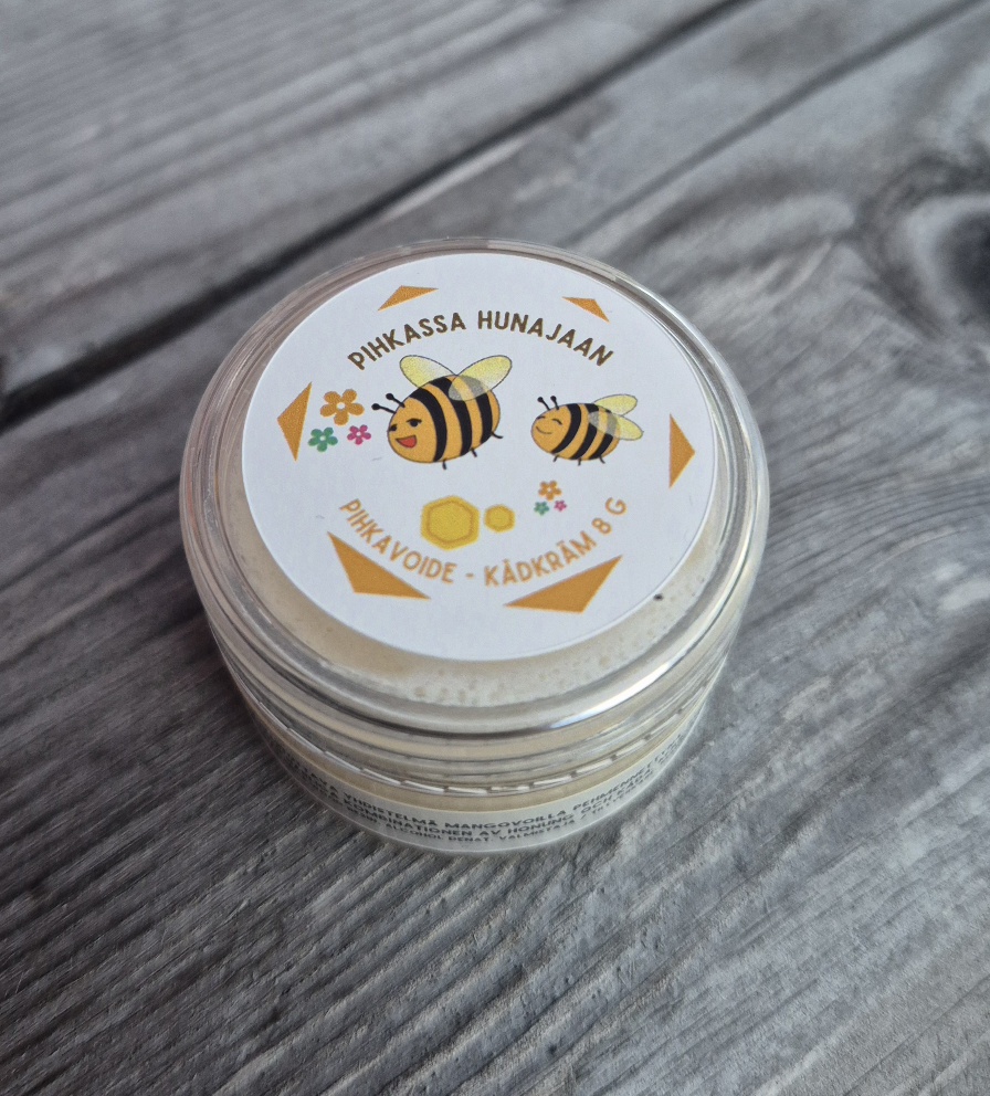 Hunaja-pihkavoide hoitaa kuivaa ihoa ja estää kosteuden haihtumisen iholtasi. Kevyt pihkainen tuoksu. Mangovoi pehmittää, pihka rauhoittaa ja hunaja kosteuttaa. Hunaja on omien mehiläisten keräämää.