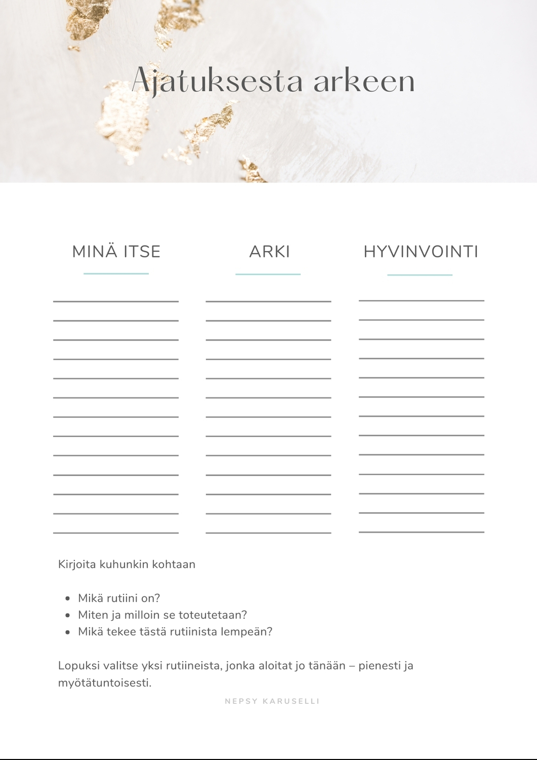 suunnitella lempeitä tapoja ja tukirutiineja arkeesi