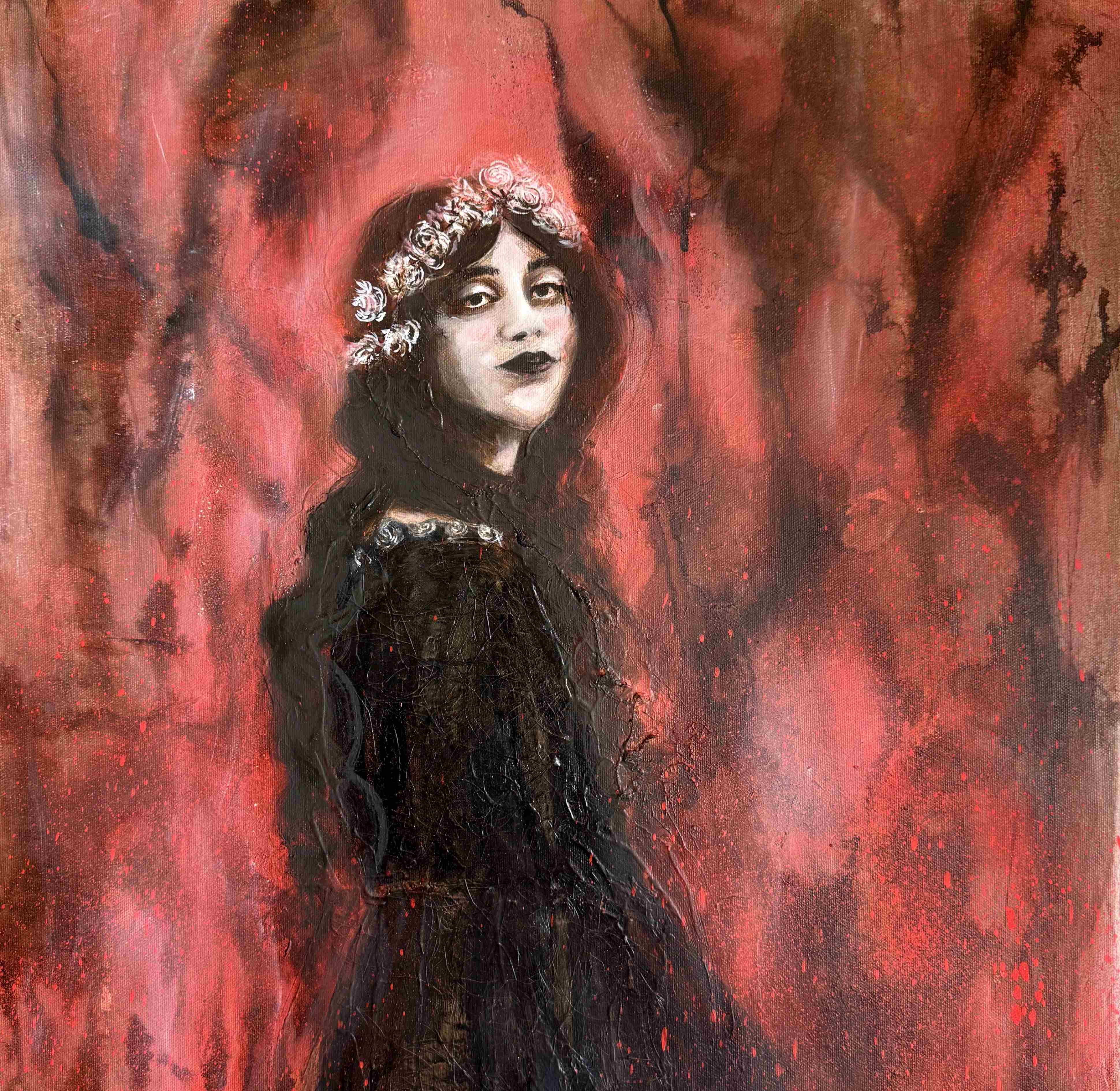 Sekatekniikka kankaalle. Mitat: 50 x 50 x 3,7 cm. Valmistunut vuonna 2025.