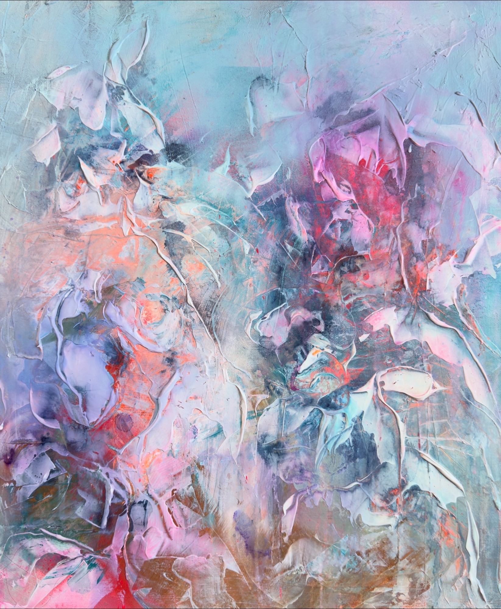 Sekatekniikka kankaalle. Mitat: 46 x 55 x 2 cm. Valmistunut vuonna 2025. Haave on maalattu 100% puuvillakankaalle, joka on pingotettu mäntykiilakehykseen. Taulu on ripustusvalmis.