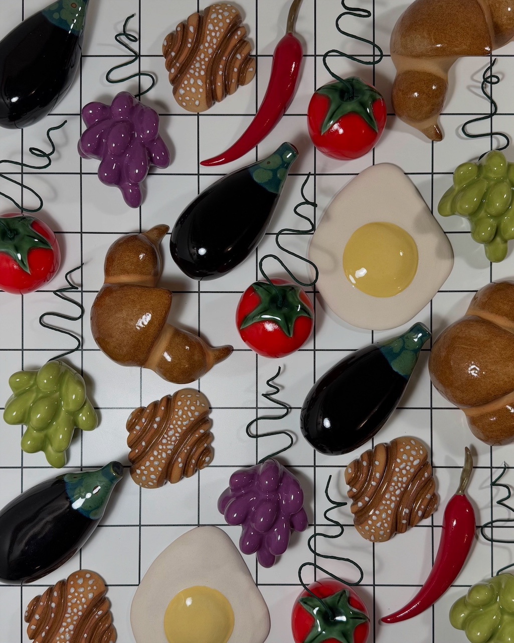Jokainen tomaatti on uniikki: töiden yksityiskohdat ja koko vaihtelevat hieman.