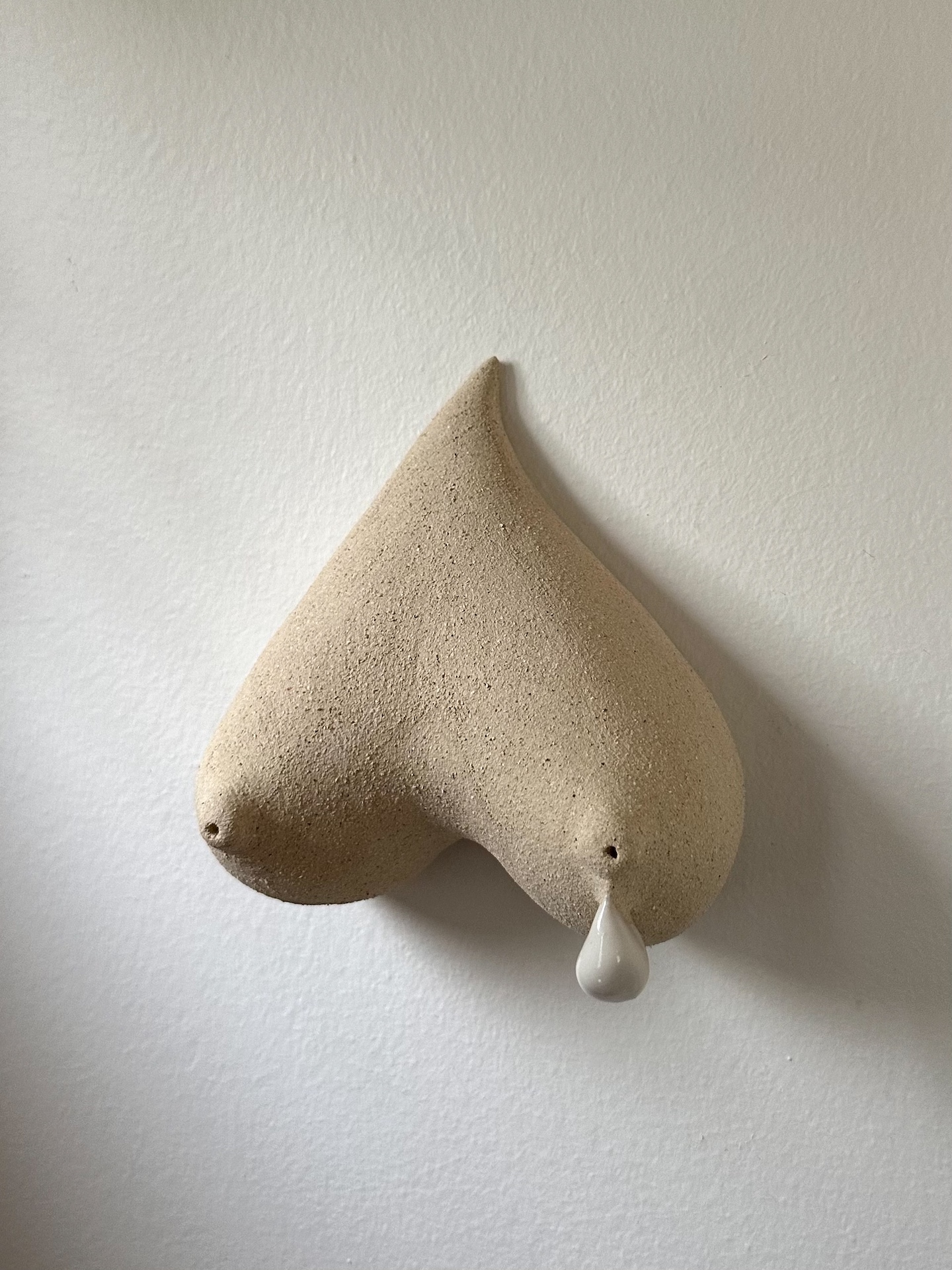 Seinäreliefi, n.13 x 13 cm. Kivitavara, lasite. Signeerattu. Työn taakse on koverrettu ripustuskolo, josta sen saa ripustettua seinälle. Työn asentoa seinällä voi hieman säätää.