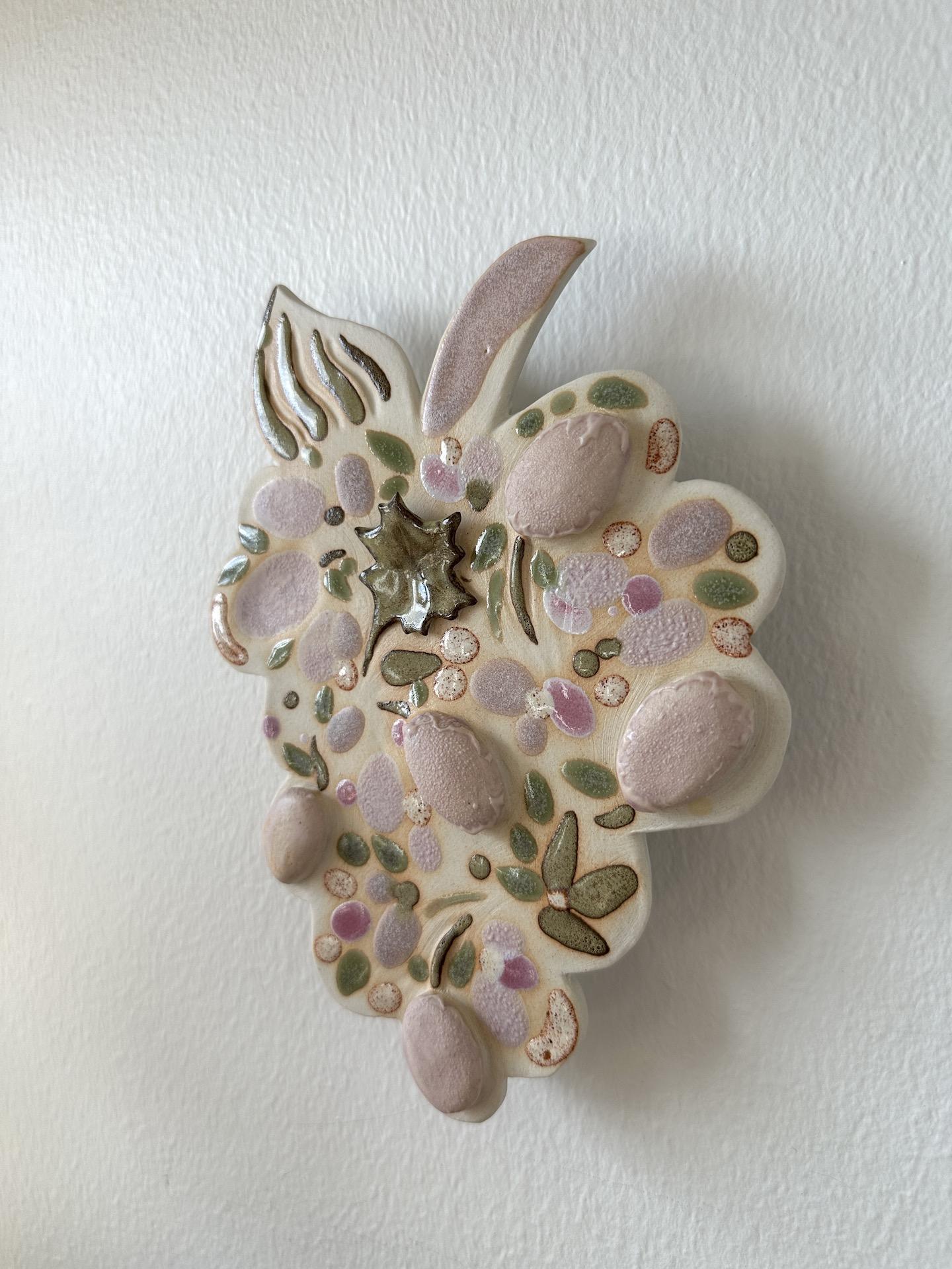 Seinäreliefi, n.20x15 cm. Kivitavara, lasite. Signeerattu. Työn taakse on liimattu ripustuspala, josta sen saa ripustettua seinälle.