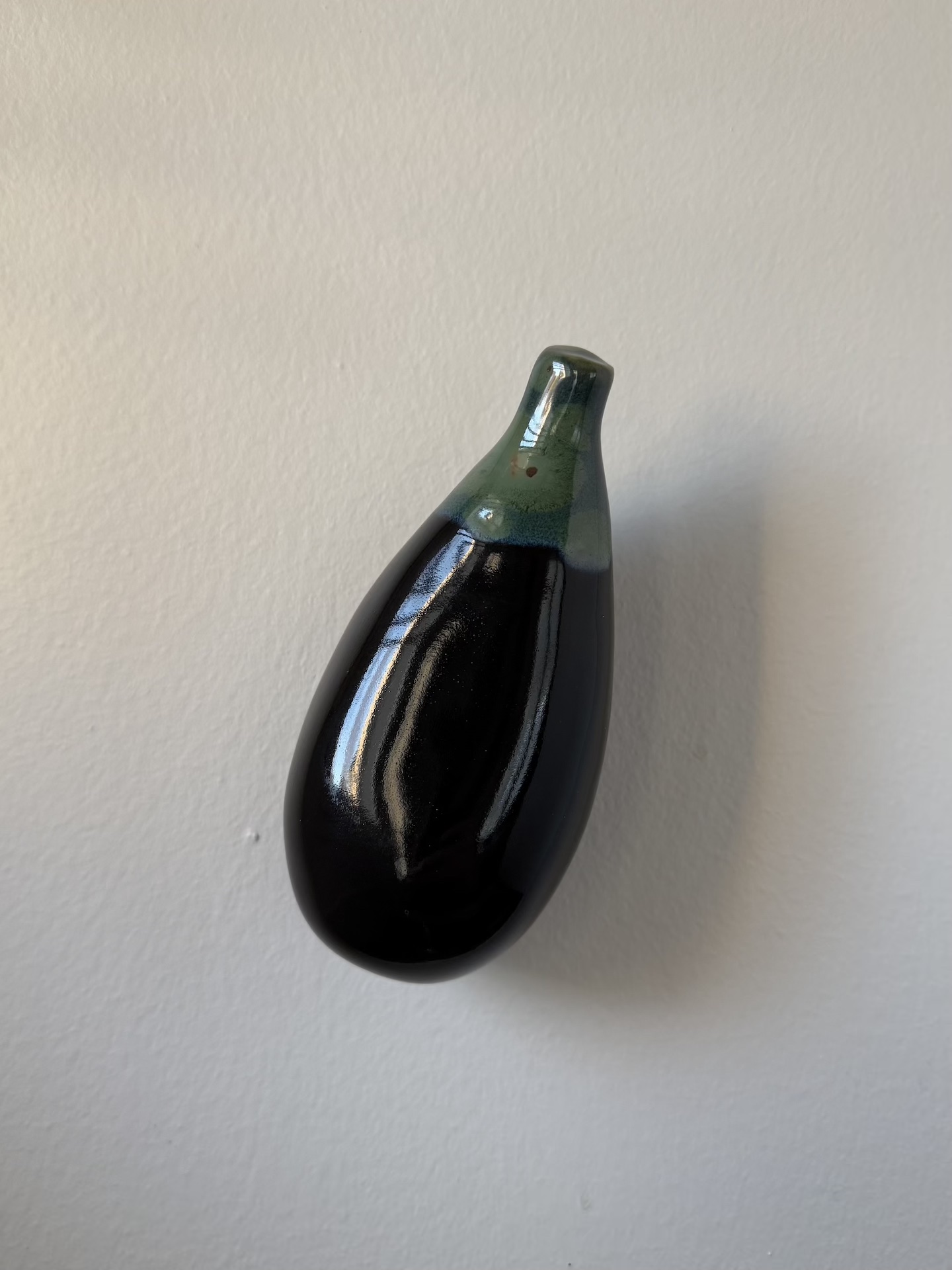 Veistos/seinäreliefi, n.14 x 6 cm. Kivitavara, lasite. Signeerattu. Työn takana on ripustuskolo, josta työn saa ripustettua seinälle. Koison asentoa seinällä voi hieman säätää.