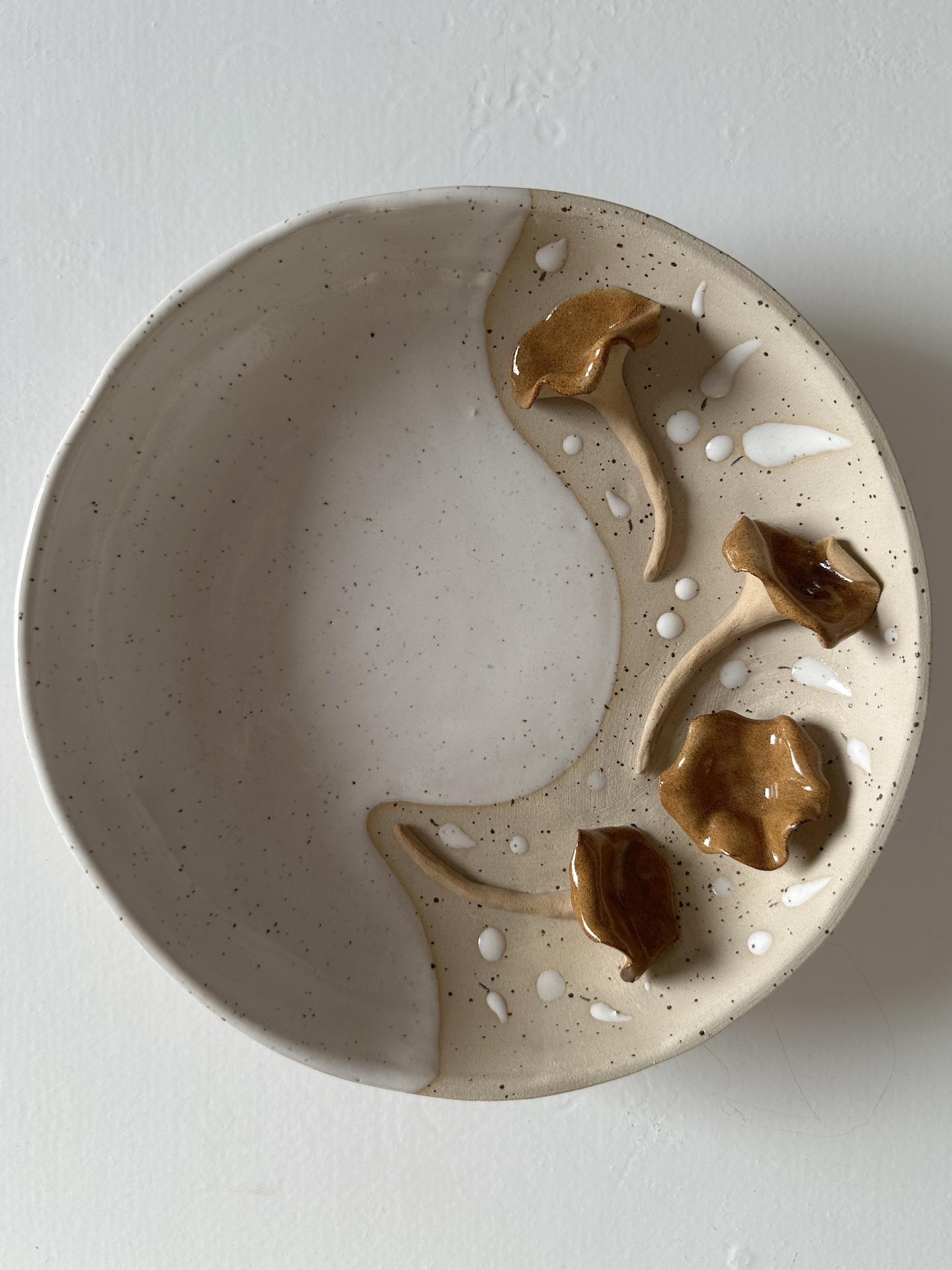 Koristelautanen, halkaisija 23 cm. Kivitavara, lasite. Signeerattu. Ei sovellu elintarvikekäyttöön.