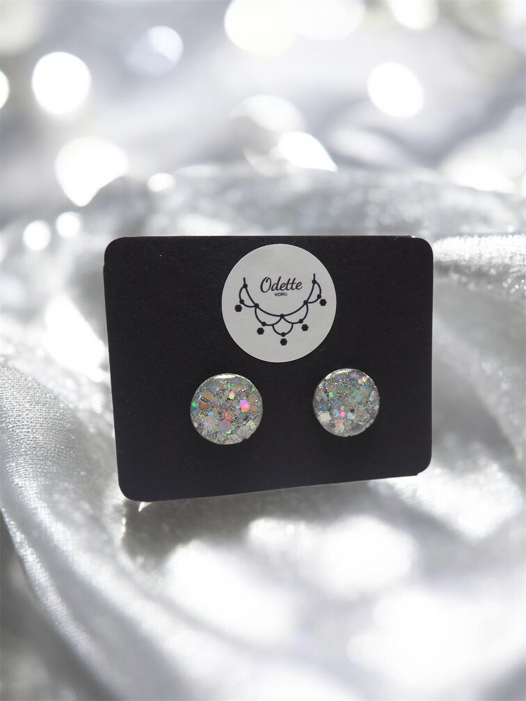 Hartsista ja glitteristä valmistetut säihkyvät nappi korvakorut▪️koko 1,5cm▪️Tappi kiinnitys ruostumaton teräs,nikkelitön