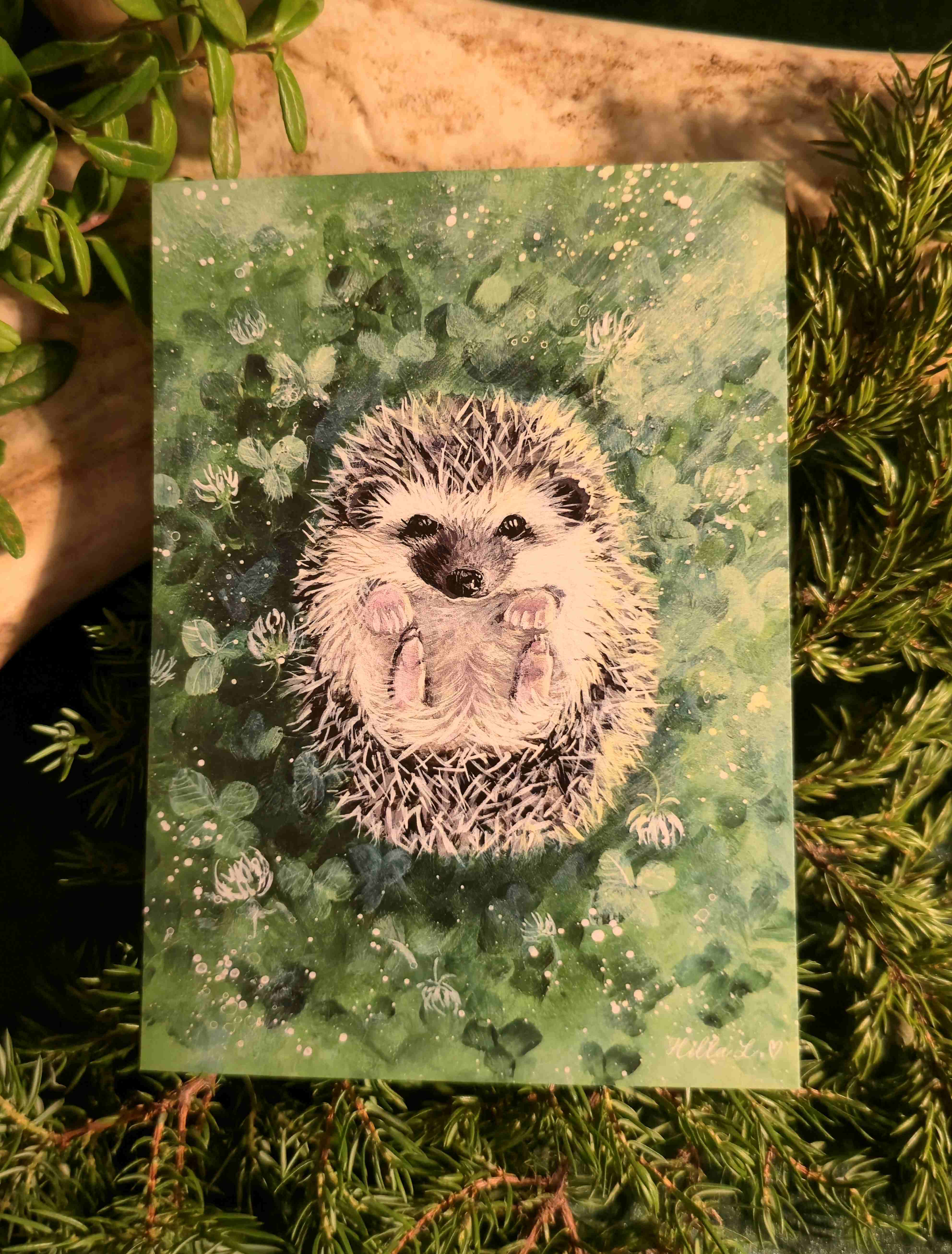 Onnenkettu Art:n taidekortit ovat saaneet kuvituksensa Hilla Löytynojan hyvän mielen maalauksista. Taianomaiset ja tunnelmalliset kortit tuovat hyvän mielen! Kortin takaa löytyy osoiterivit. Kortit on Suomessa painettu.
