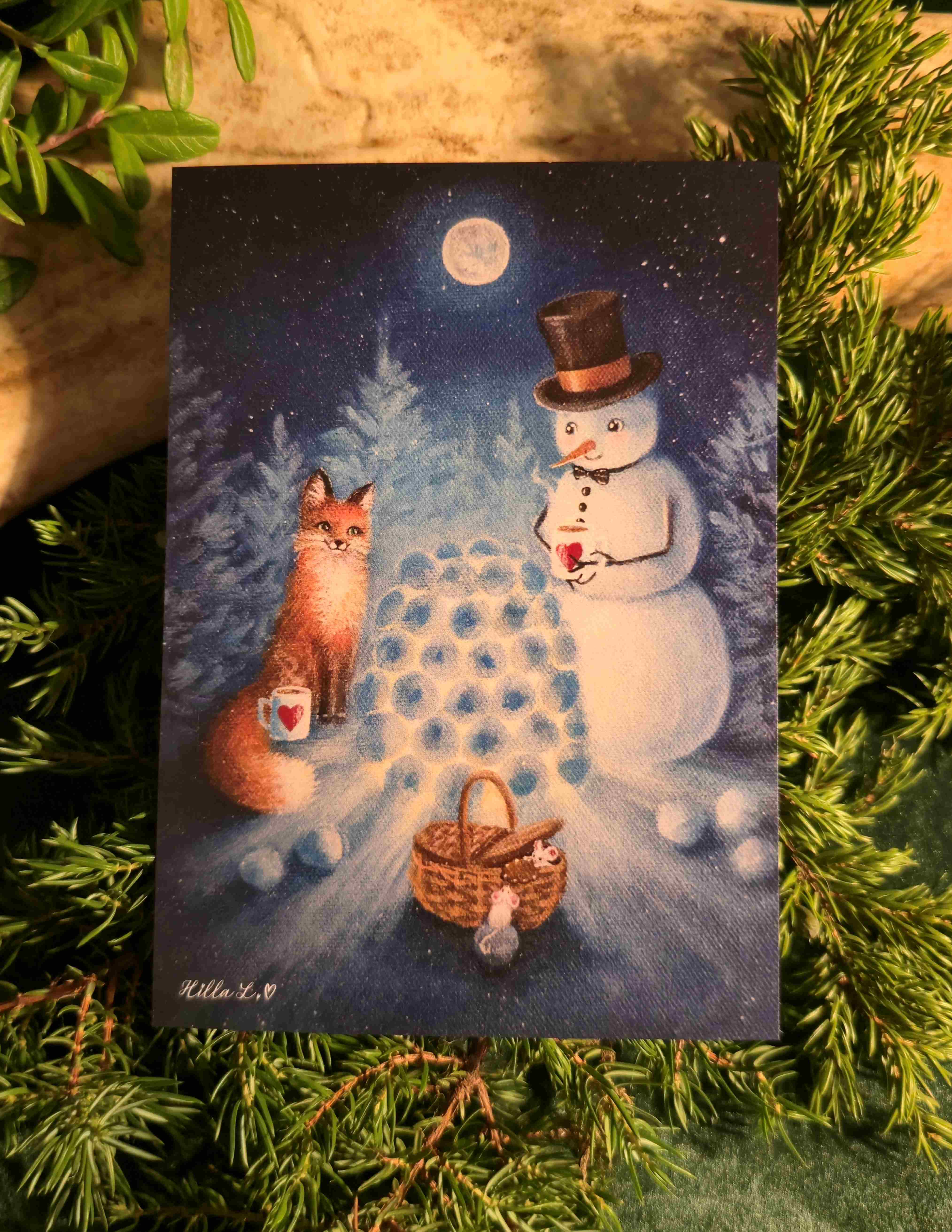 Onnenkettu Art:n taidekortit ovat saaneet kuvituksensa Hilla Löytynojan hyvän mielen maalauksista. Taianomaiset ja tunnelmalliset kortit tuovat hyvän mielen! Kortin takaa löytyy osoiterivit. Kortin koko on a6. Kortit on Suomessa painettu.