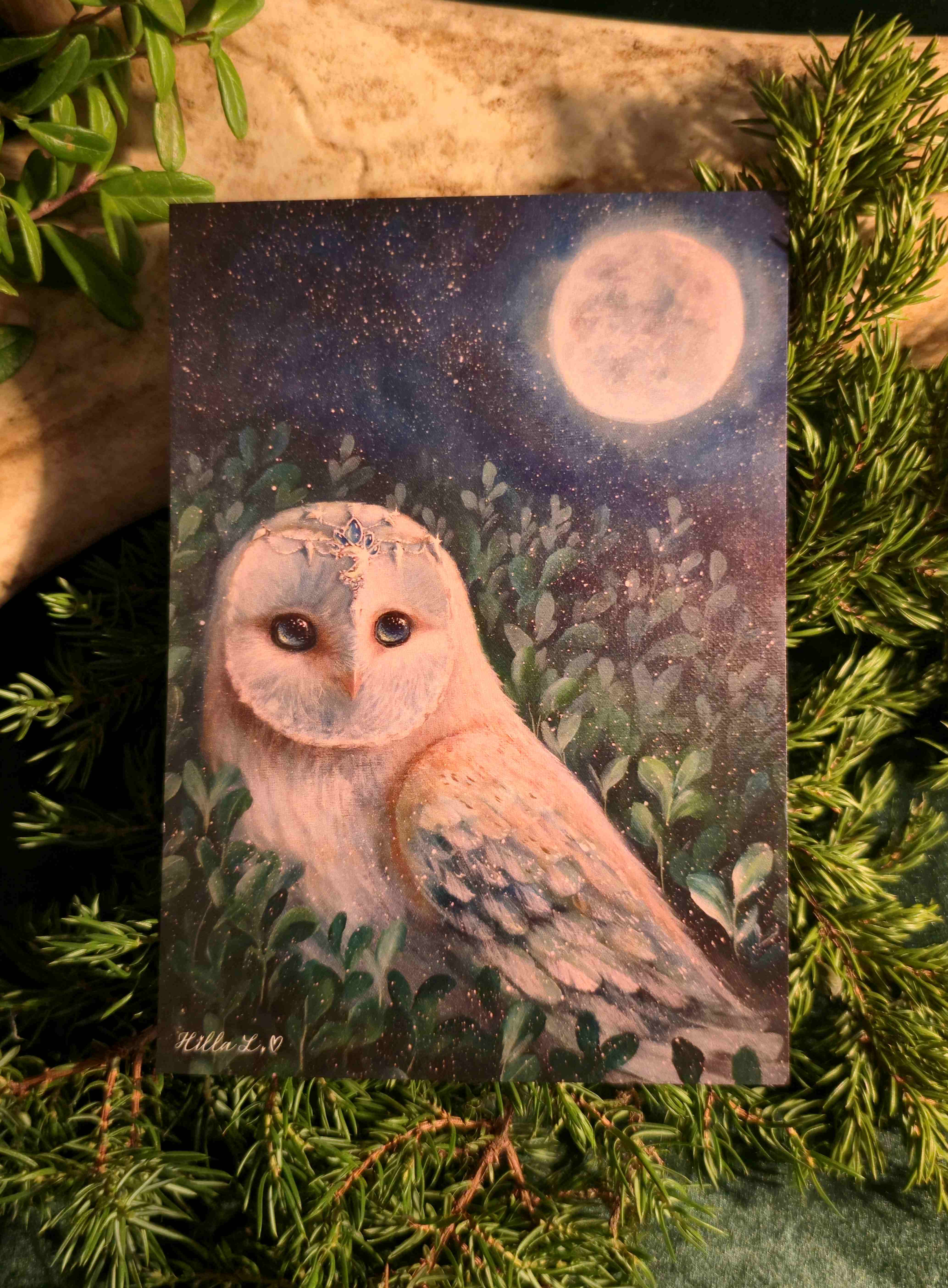 Onnenkettu Art:n jouluiset taidekortit ovat saaneet kuvituksensa Hilla Löytynojan hyvän mielen maalauksista. Taianomaiset ja tunnelmalliset kortit tuovat hyvän mielen! Kortin takaa löytyy osoiterivit. Kortin koko on a6. Kortit on Suomessa painettu.