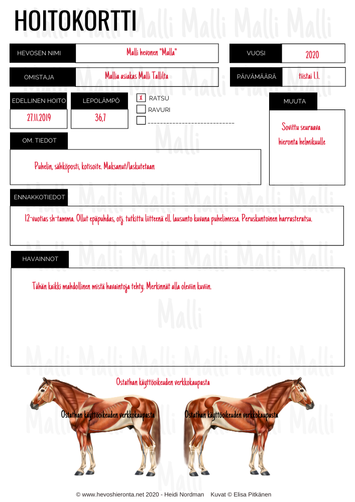Kuvassa on malliversio, sähköpostiisi kuitin mukana tuleva latauslinkki sisältää PDF -tiedoston, jonka tekstiosiot ovat tyhjiä ja malli vesileima poistettu.