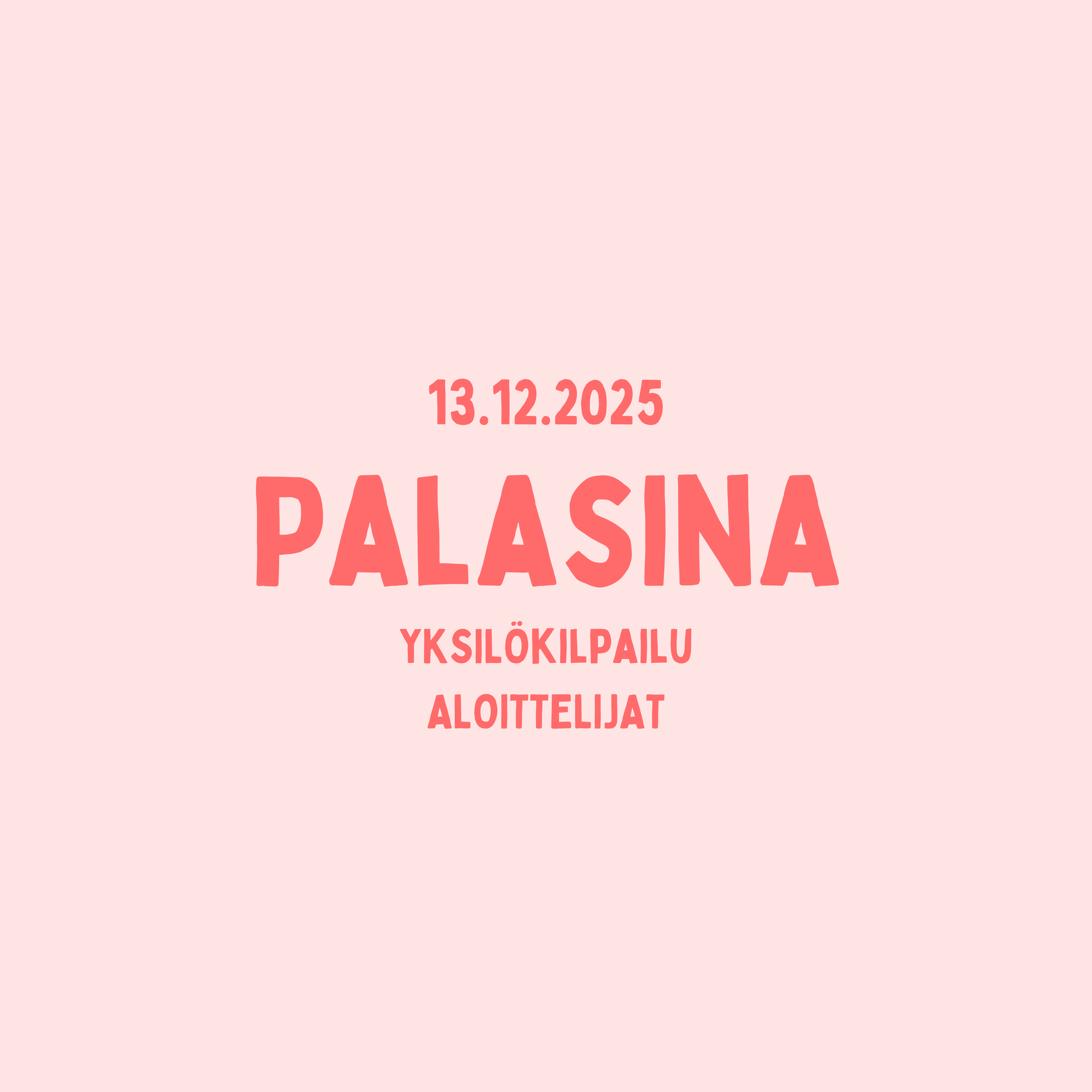 Mitä: Yksilökilpailu aloittelijoille (500 palan palapeli) Missä: Palasina Studio (Kirstinkatu 3 D 8, 00530 Helsinki) Milloin: Lauantai 13.12. klo 13–15.30 Kesto: 2,5 h (2 h kilpailu + 30 min yhteenveto)