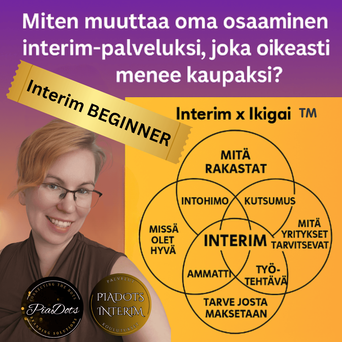 ✨Liittyminen PiaDots Interim -osaajapankkiin ilman liittymismaksua. Tämä lisää näkyvyyttäsi yrityspäättäjille ja mahdollistaa toimeksiantojen löytymisen myös valmennuksen jälkeen.