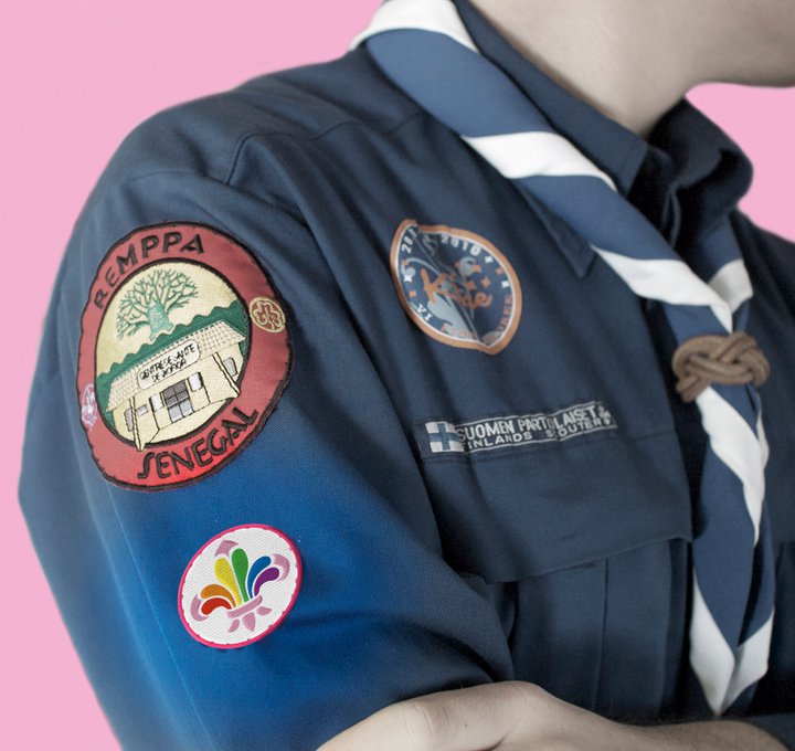 Kankainen merkki, jonka voi ommella kiinni esimerkiksi partiopaitaan. Merkkiä kantamalla osoitat tukesi Pinkkipartiolle ja kaikille avoimelle partiotoiminnalle.