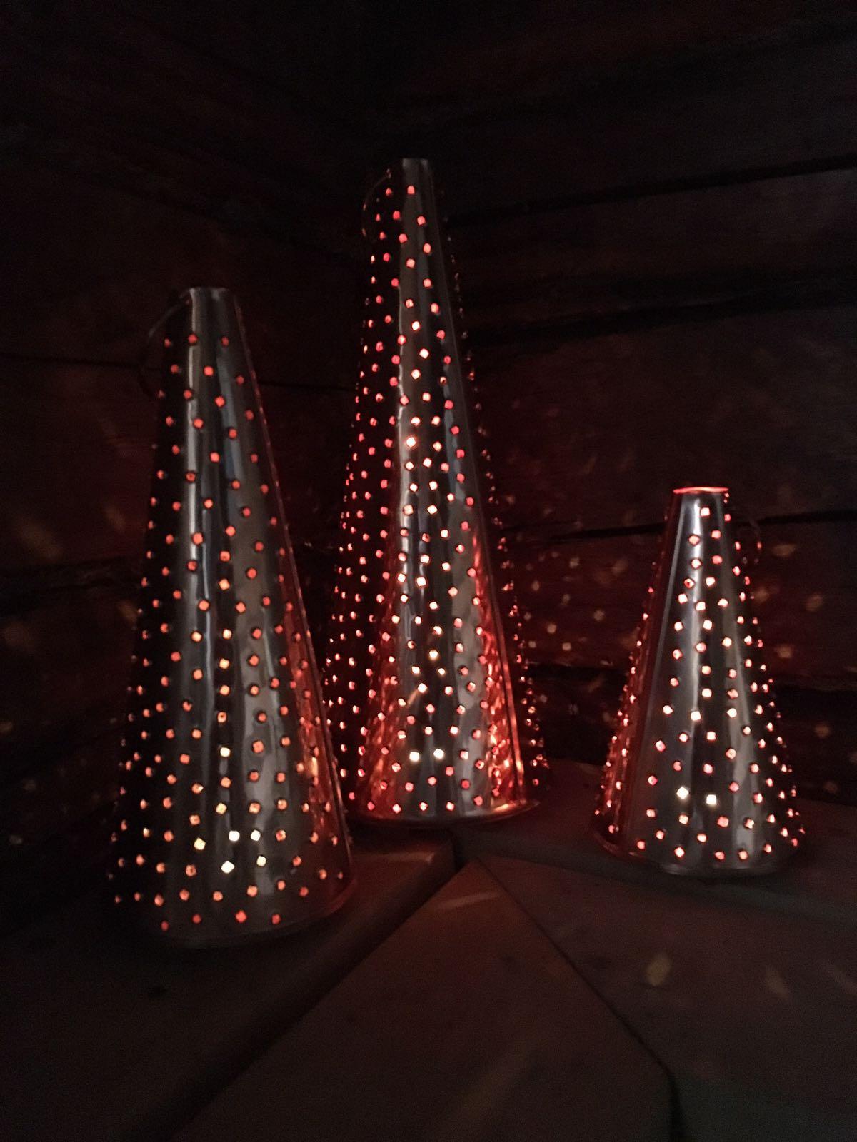 Korkeus 20cm, 30 cm ja 38 cm Kolme näyttävää lyhtyä Materiaali: kupari