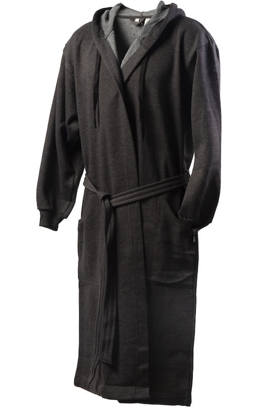 Uniikki kylpytakki/aamutakki on valmistettu ihanan pehmeästä collegemateriaalista. Vyölenkit ja vyö sekä ripustuslenkki niskassa. Hupussa kiristysnyöri. Hihansuissa leveä resori, kapeampi koristeresori kahden ison avotaskun reunoissa. Hupparimainen takki on kevyt ja erittäin mukava päällä.