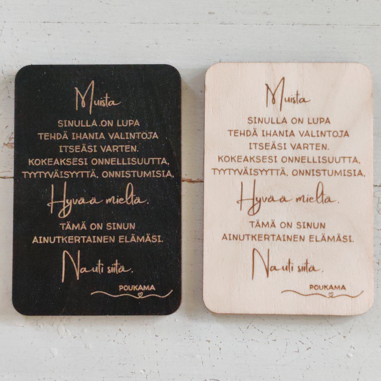 Koivuvanerinen magneetti. Eri kokoja. Tuotteella ilahdutat niin itseäsi kuin ystävääsi. Väri koivu tai musta. Valmistettu Suomessa.
