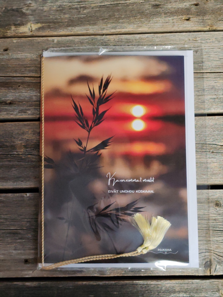 A4 kokoinen suruadressi. Sisältää adressin, nauhan, kirjekuoren. Pakattu muoviin. Valmistettu Suomessa.
