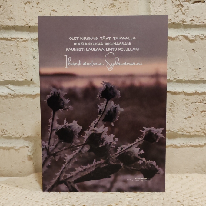A5 kokoinen suruadressi. Sisältää adressin, kirjekuoren. Pakattu muoviin. Valmistettu Suomessa.