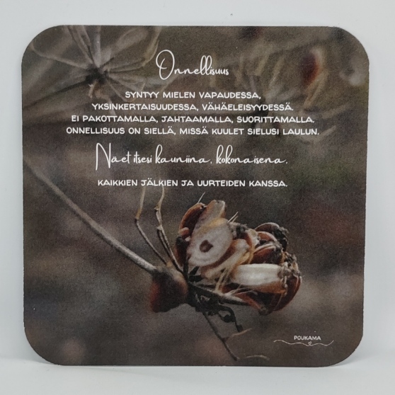 Mattakartonkinen 14x14 cm Runokortti pyöristetyillä reunoilla. Kuvassa kuhmolainen luonto. Kuvat ja sanat Johanna Korhonen. Valmistettu Suomessa. MUISTA VALITA TOIMITUSTAPA OMASTA TUOTEKATEGORIASTA! 1-5 kpl kortteja menee kirjepostissa!