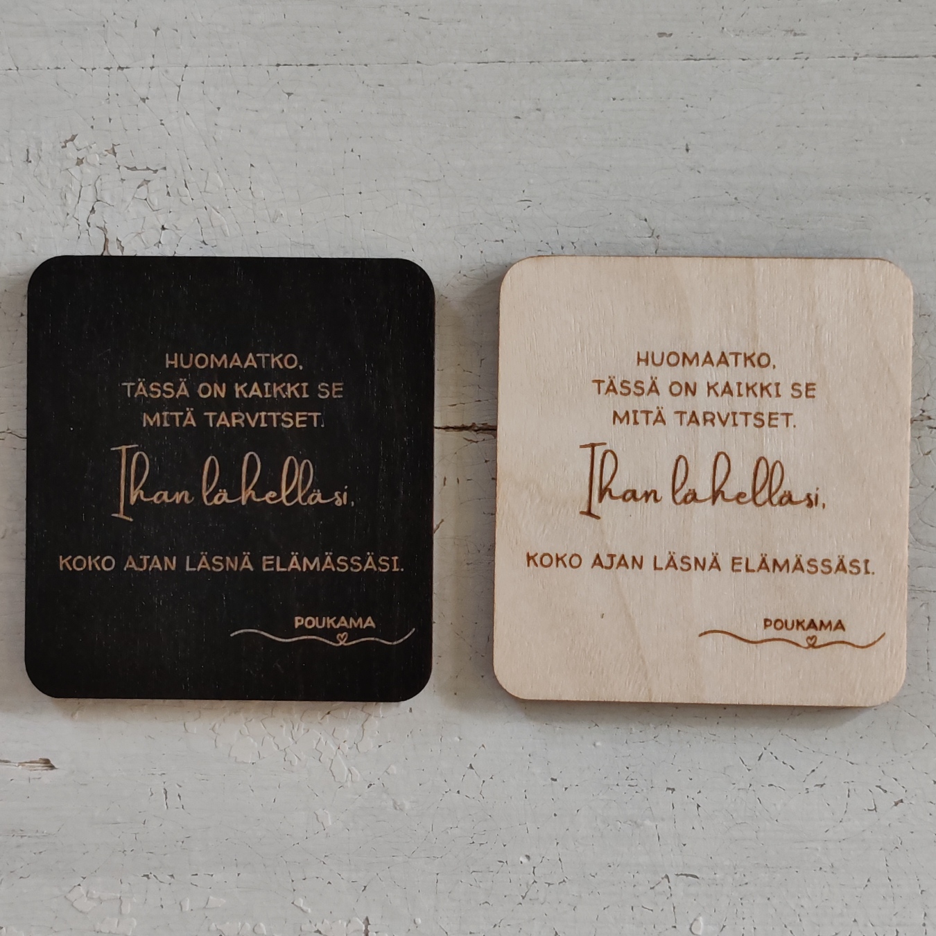 Koivuvanerinen runomagneetti kiinnitettäväksi esimerkiksi jääkaapin oveen. Runomagneetin sanoilla ilahdutat niin itseäsi kuin ystävääsi. Väri koivu. Koko 5,8cm x 5,8cm. Valmistettu Suomessa. MUISTA VALITA TOIMITUSTAPA OMASTA TUOTEKATEGORIASTA!