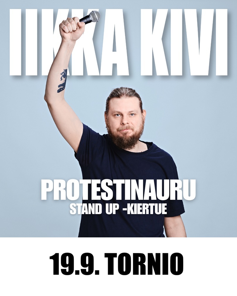 Peruslippu stand up -koomikko Iikka Kiven ”Protestinauru” -soolonäytökseen lauantaina 19.9.2026 Tornion Järjestötalolla. Esitys alkaa klo 19, ovet aukeavat klo 18. Esityksen kesto tauon kanssa n. 2 tuntia. Ota sähköpostin liitteenä tuleva, QR-koodilla varustettu asiakirja mukaan joko tulostettuna tai PDF-muodossa ja esitä se saapuessasi lipunmyyjälle (mikäli et saa asiakirjaa, ole yhteydessä osoitteeseen remakkaclub@gmail.com). Keikkapaikan osoite Kemintie 53, 95420 Tornio. Ikäraja K-16.