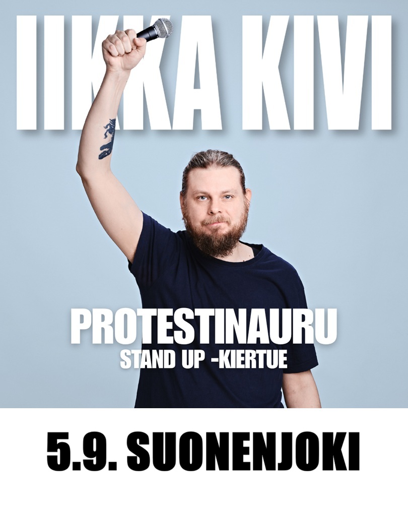 Alennuslippu stand up -koomikko Iikka Kiven ”Protestinauru” -soolonäytökseen lauantaina 5.9.2026 Suonenjoen Kellarikalleriassa. Tarkoitettu opiskelijoille, varushenkilöille / siviilipalveluksessa oleville, työttömille, eläkeläisille ja pienituloisille. Esitys alkaa klo 18, ovet avautuvat klo 17. Esityksen kesto tauon kanssa n. 2 tuntia. Ota sähköpostin liitteenä tuleva, QR-koodilla varustettu asiakirja mukaan joko tulostettuna tai PDF-muodossa ja esitä se saapuessasi lipunmyyjälle (mikäli et saa asiakirjaa, ole yhteydessä osoitteeseen remakkaclub@gmail.com). Keikkapaikan osoite Olavi Leskisen katu 12, 77600 Suonenjoki. Ikäraja K-16.