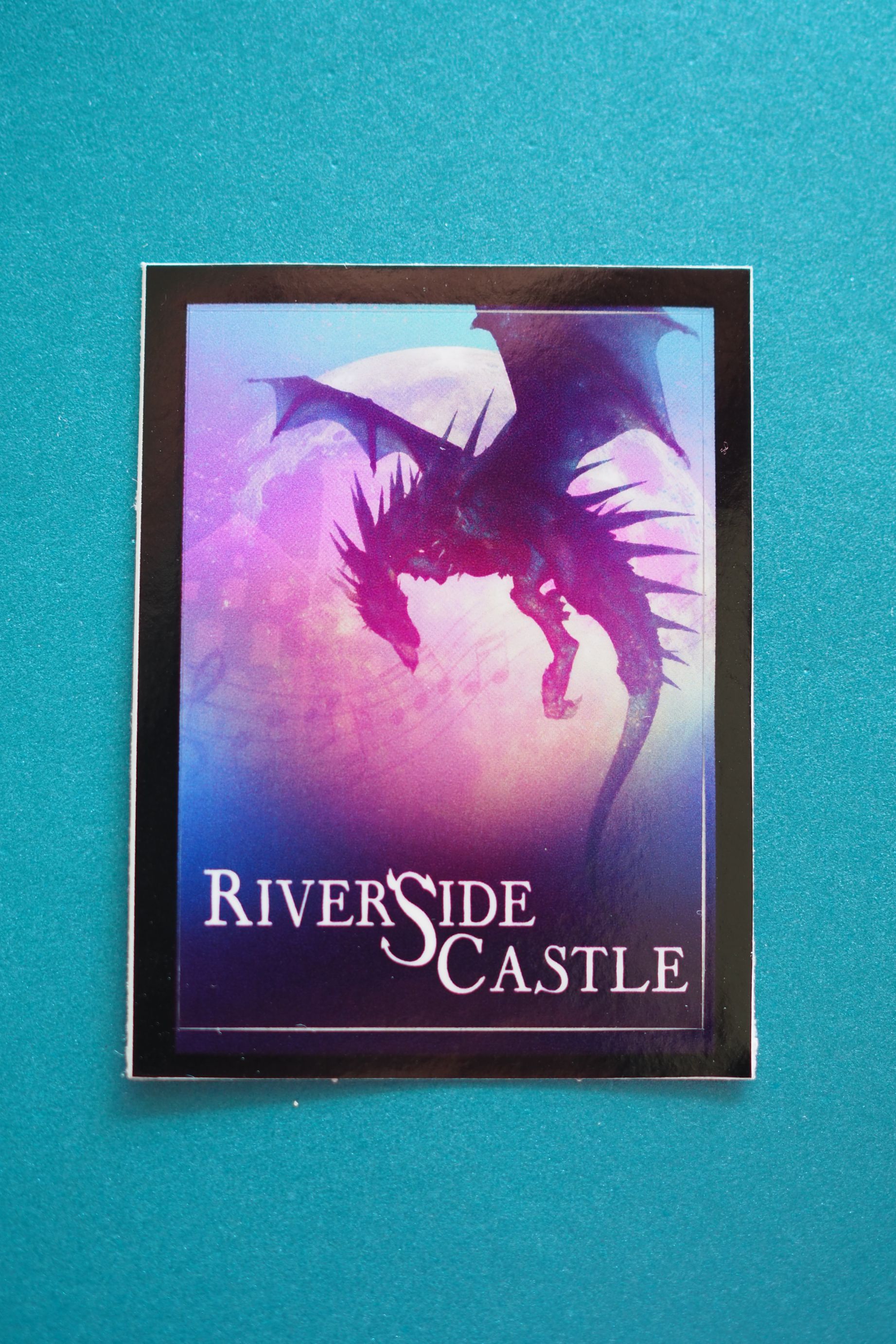 Riverside Castle on levittänyt nörttimusiikin ilosanomaa ja kymmenen vuotta! Sen kunniaksi kuoron logon lohikäärme heräsi eloon ylväässä violetissa. Kiiltäväpintainen vinyylitarra, ei säänkestävä. Koko 4x6,5cm