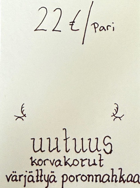 Ihanat värikkäät ja uniikit korvakorut. Valmistettu poronnahasta. Värjätty petsiväreillä, muotoiltu kosteana ja annettu kuivua / kovettua muotoonsa. Koot ja muodot vaihtelee, korut hyvin kevyet. Hintaan sisältyy postikulut 2,75€.