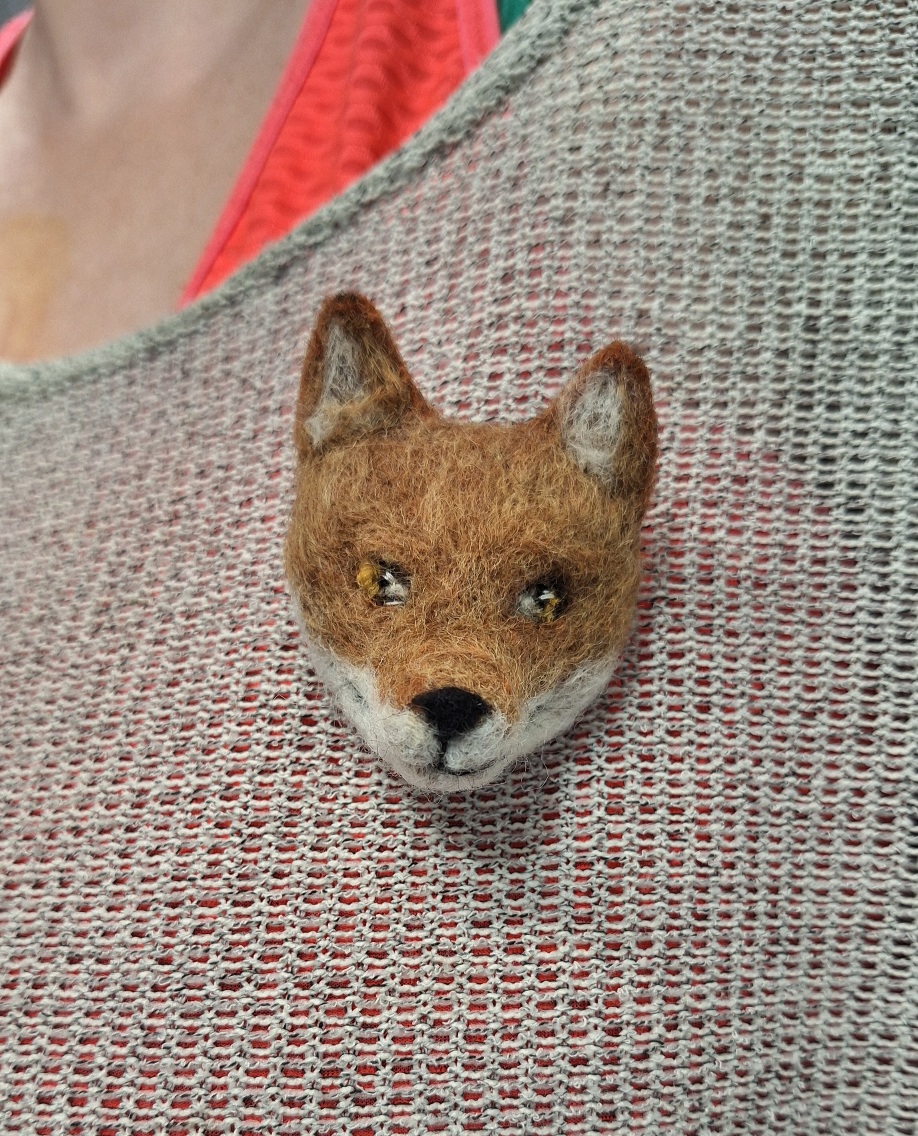 Kettu, koko n 5cm Valmistettu huovuttamalla, ja takana on neulakiinnitys.