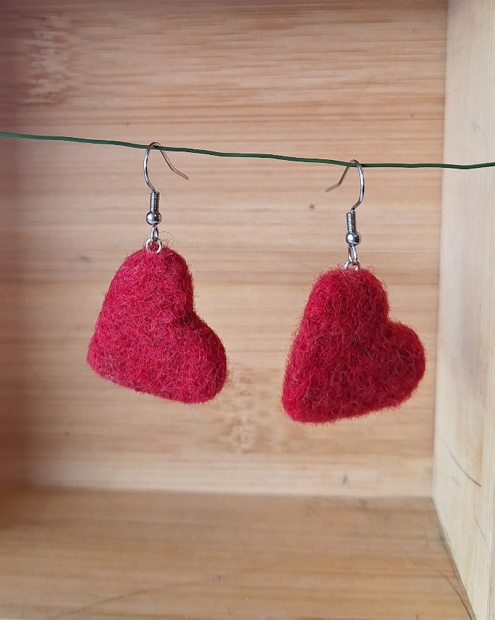Huovutetut pienet sydän korvikset, hyvin kevyet. Malleissa pieniä mallieroja. Sydämen koko n. 2,5cm. Koukut kirurginteräs.