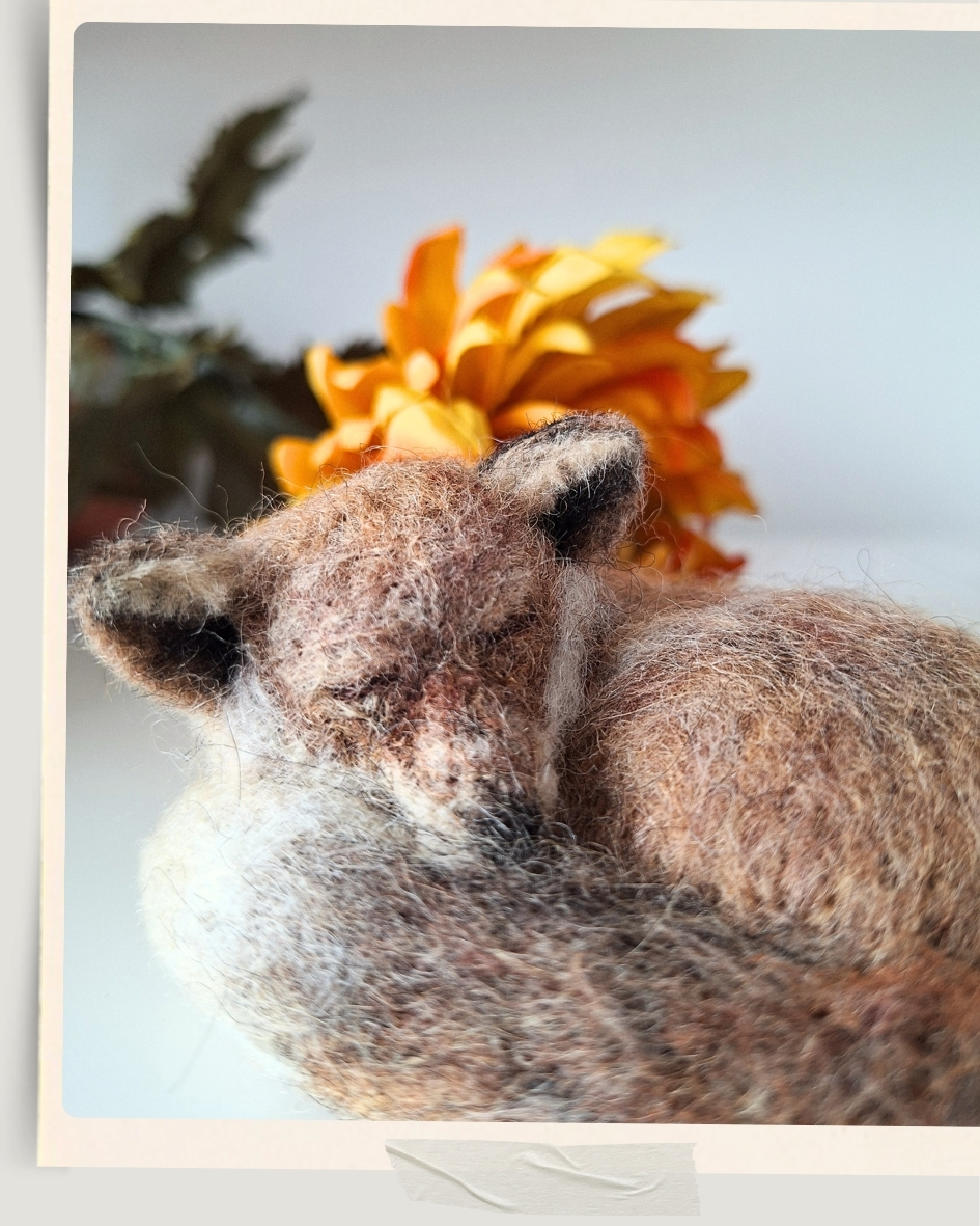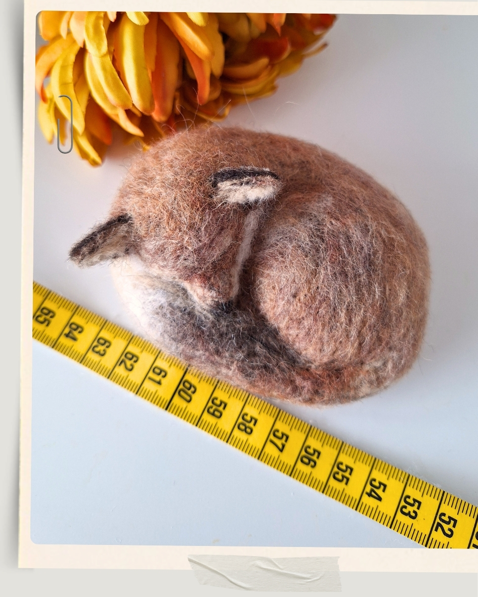 Huovutettu koriste kettu, veistos tyyppinen huovutus työ. Koko vaihtelee noin 10cm x 8cm. Saattaa olla hiukan isompikin. Täyttä villaa. Kettujen ilmeet ja asennot voi olla erilaisia. Jokainen kettu on yksilöllinen tuote. Huom. väreissä voi olla pieniä eroja. Hiukan riippuu sävyistä mitä on saatavilla. Kettuja ei ole valmiina. Ne postitetaan tilauskuun aikana/ kuun lopussa tilatessa noin 2 viikkoa tilauksesta.