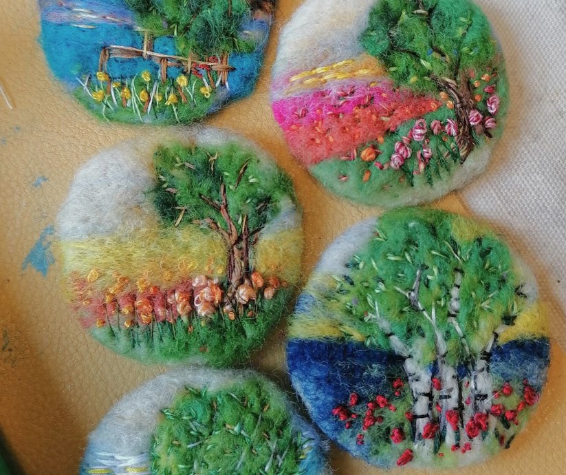 Valitse ylläoleva aihe. ja siihen toivevärimaailma. tai jätä väritoiveet tyhjäksi. Tällä hetkellä en valmista omien kuvien mukaan. Kehä valmistuu huovuttamalla, ja kirjonnalla.