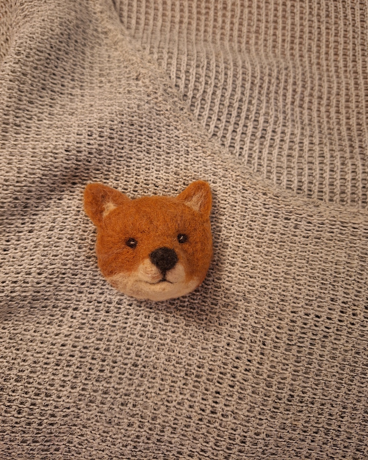 Kettu, koko n 5cm x 5cm Valmistettu huovuttamalla, ja takana on neulakiinnitys.