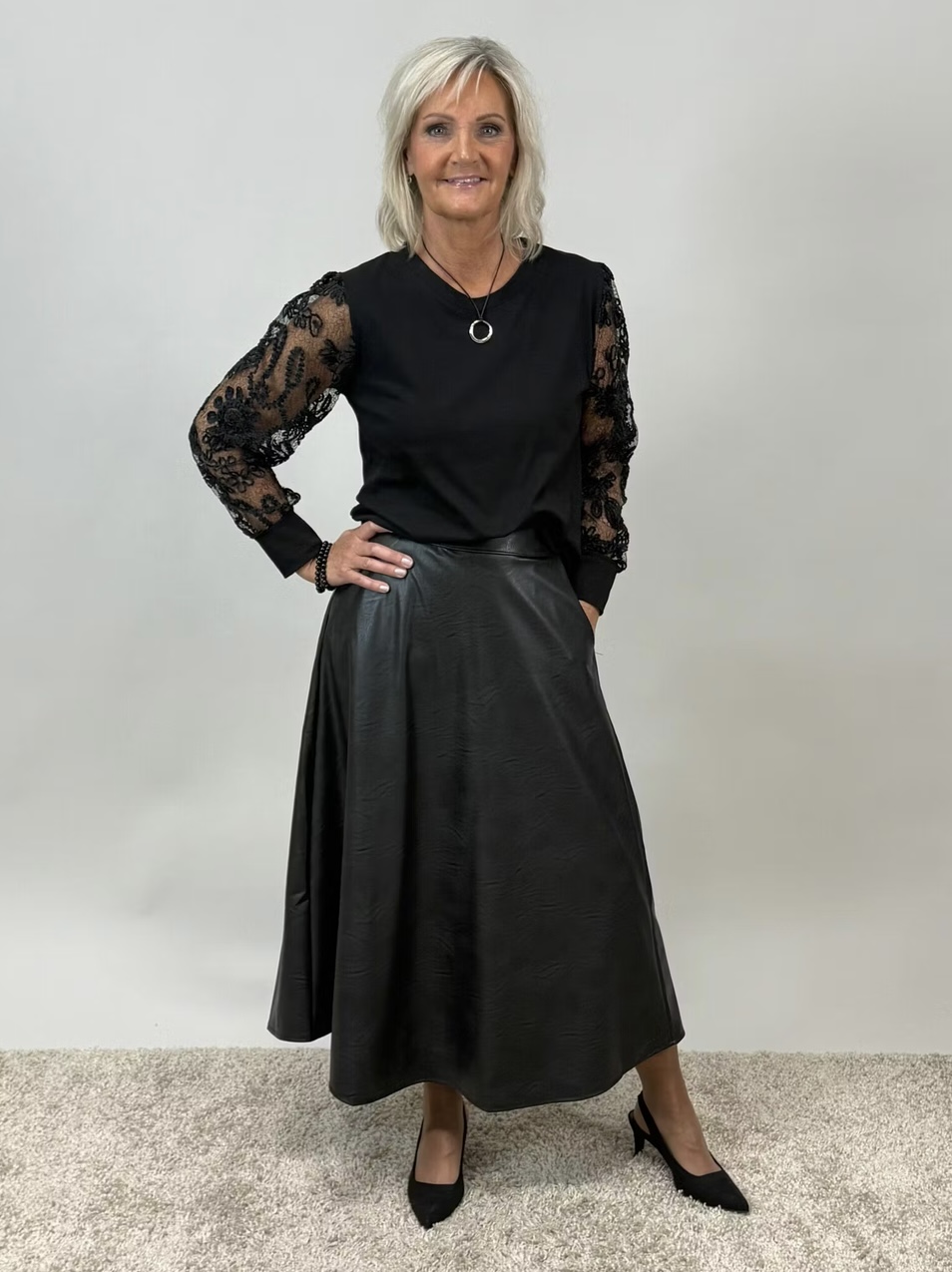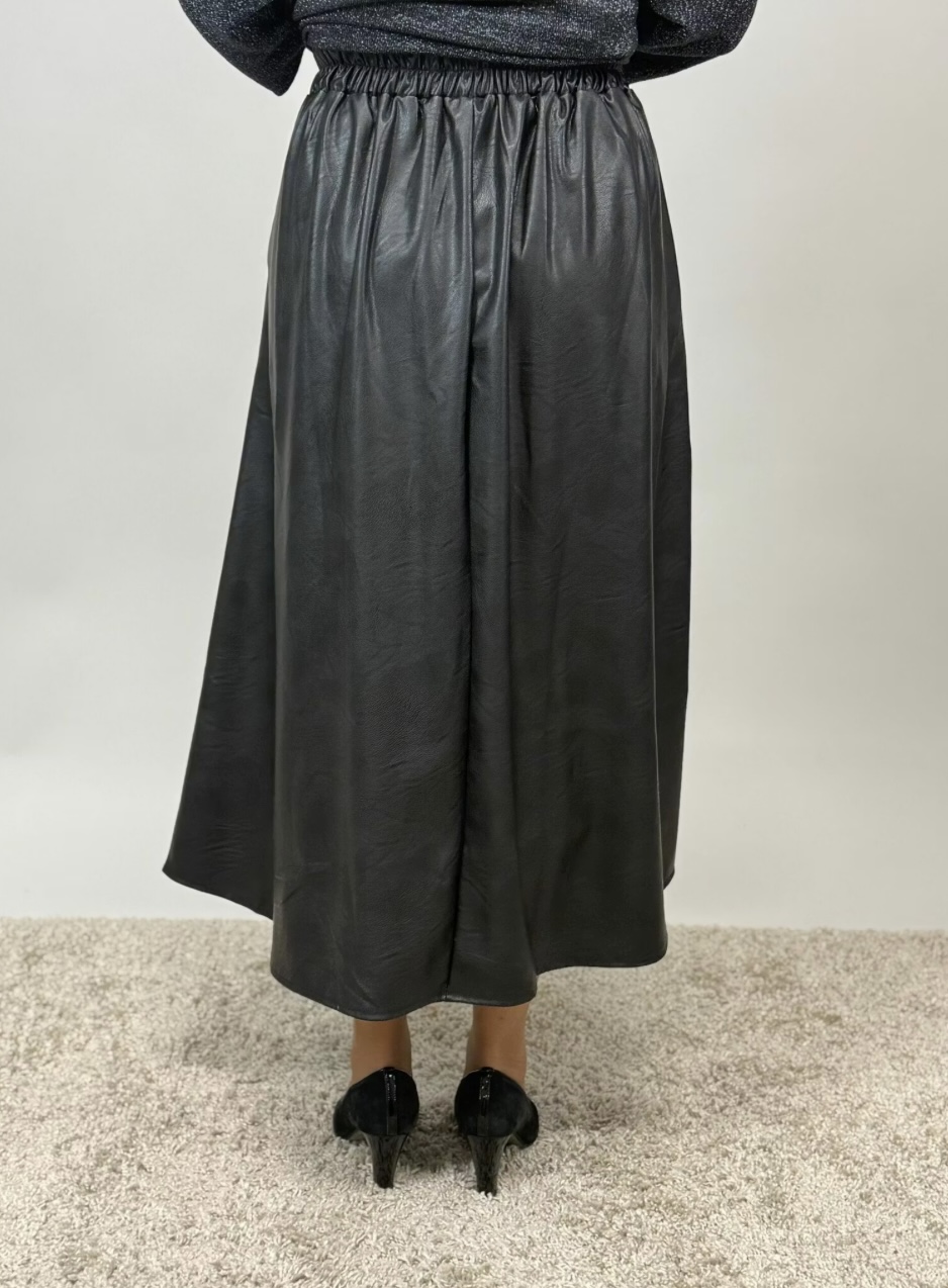 Alexia, keinonahkainen hame. Taskut edessä. Kuminauha vyötäröllä, jonka ansioista menee monen kokoiselle.