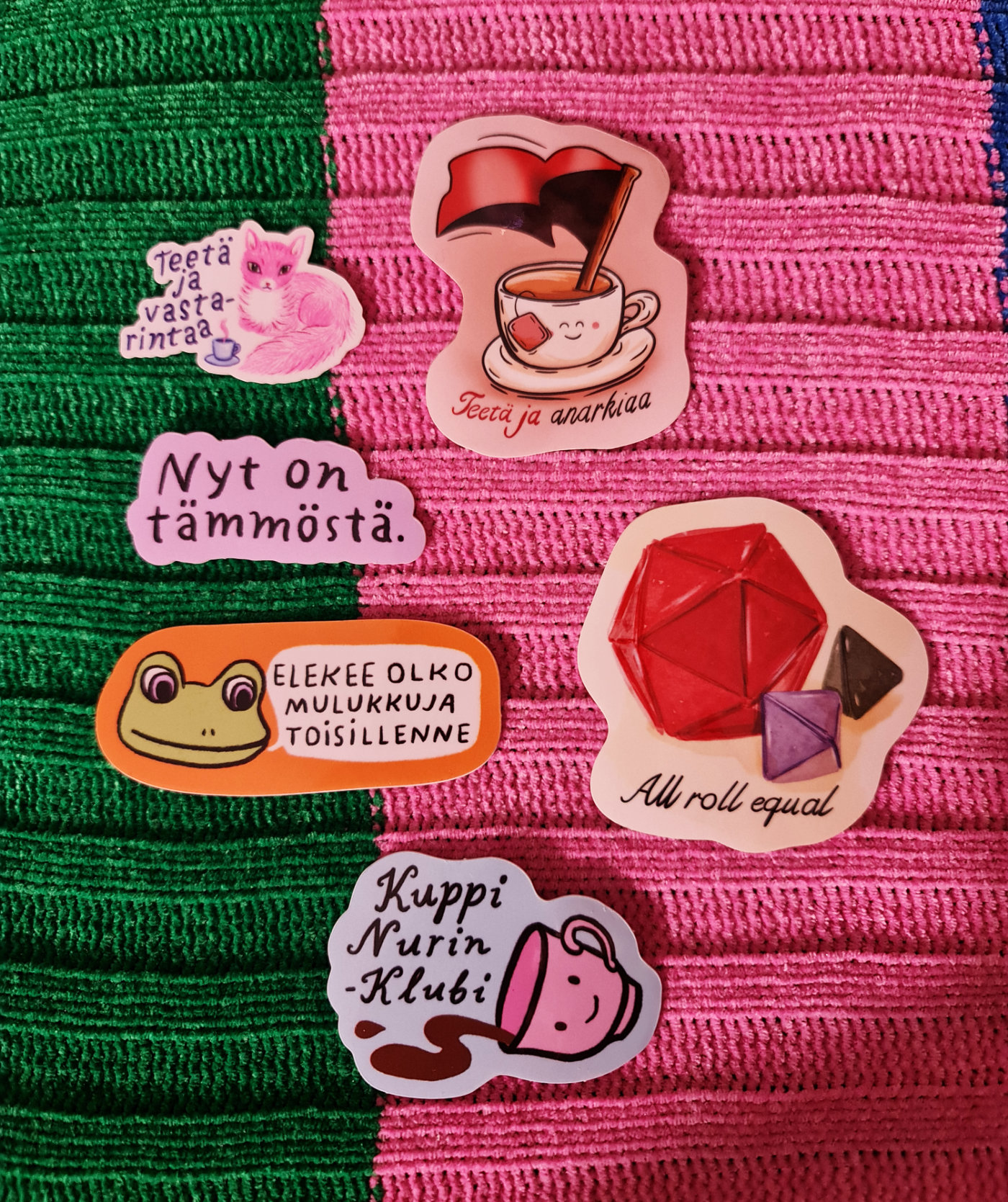 Muistathan, että pelkkiä tarroja tilatessa voit lisätietoihin kirjoittaa myös haluamasi ylimääräisen tarran. Pelkät tarratilaukset lähetetään näes kirjepostina ja tämä toimii hyvityksenä postimaksusta.