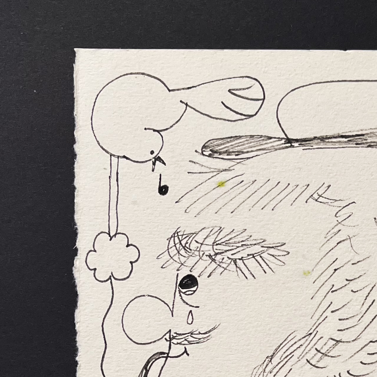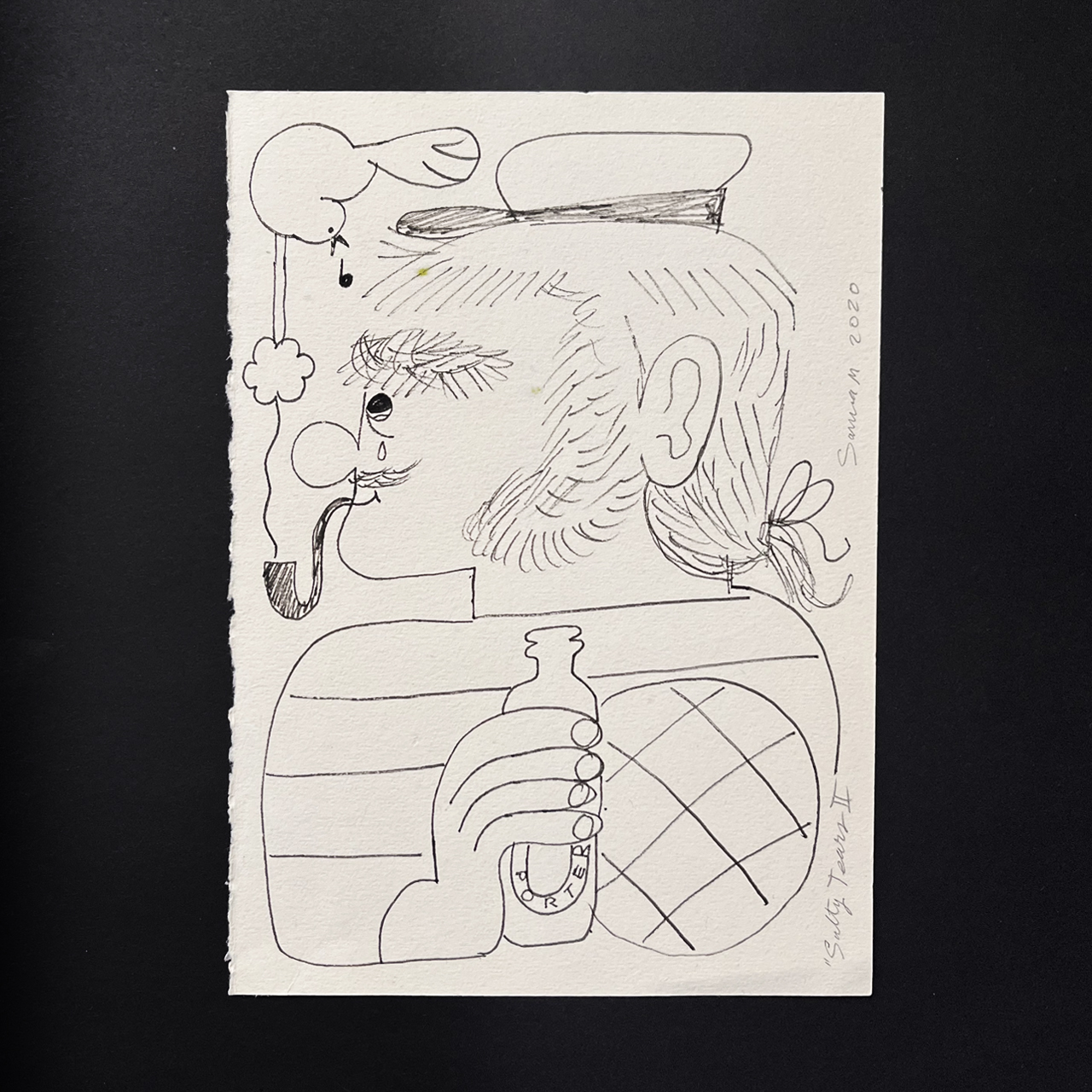It's a melancholy sailor with a songbird motif, ripped out from some old notebook. There are some green stains on it and it holds a salty scent (tears?). Size 150 x 202 mm. Signed by artist. Posted with protective cardboard, no frame included.