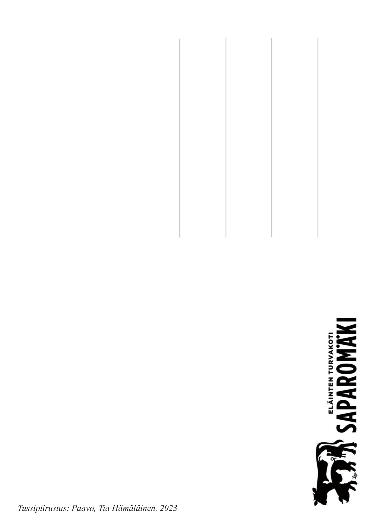 Kauniit postikortit Saparomäen asukkaista Tildasta ja Paavosta sekä kortti, jossa ovat Paavo ja Siiri sekä teksti "Ainoa ero on siinä miten näemme heidät". Kortit on kuvittanut Tia Hämäläinen, tekniikkana tussipiirustus. Kortit myydään kolmen paketeissa. Kortin takana on tilaa omalle tervehdykselle.
