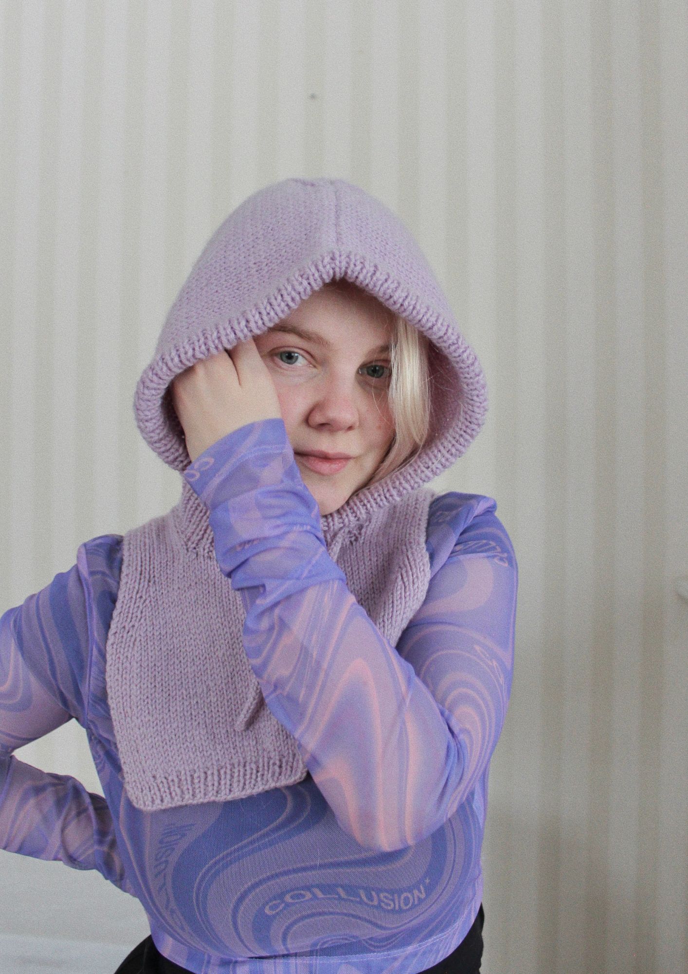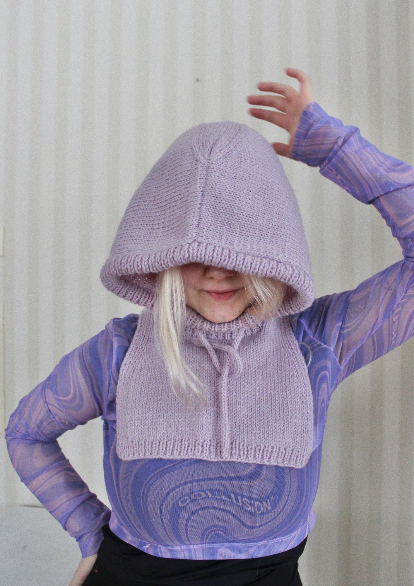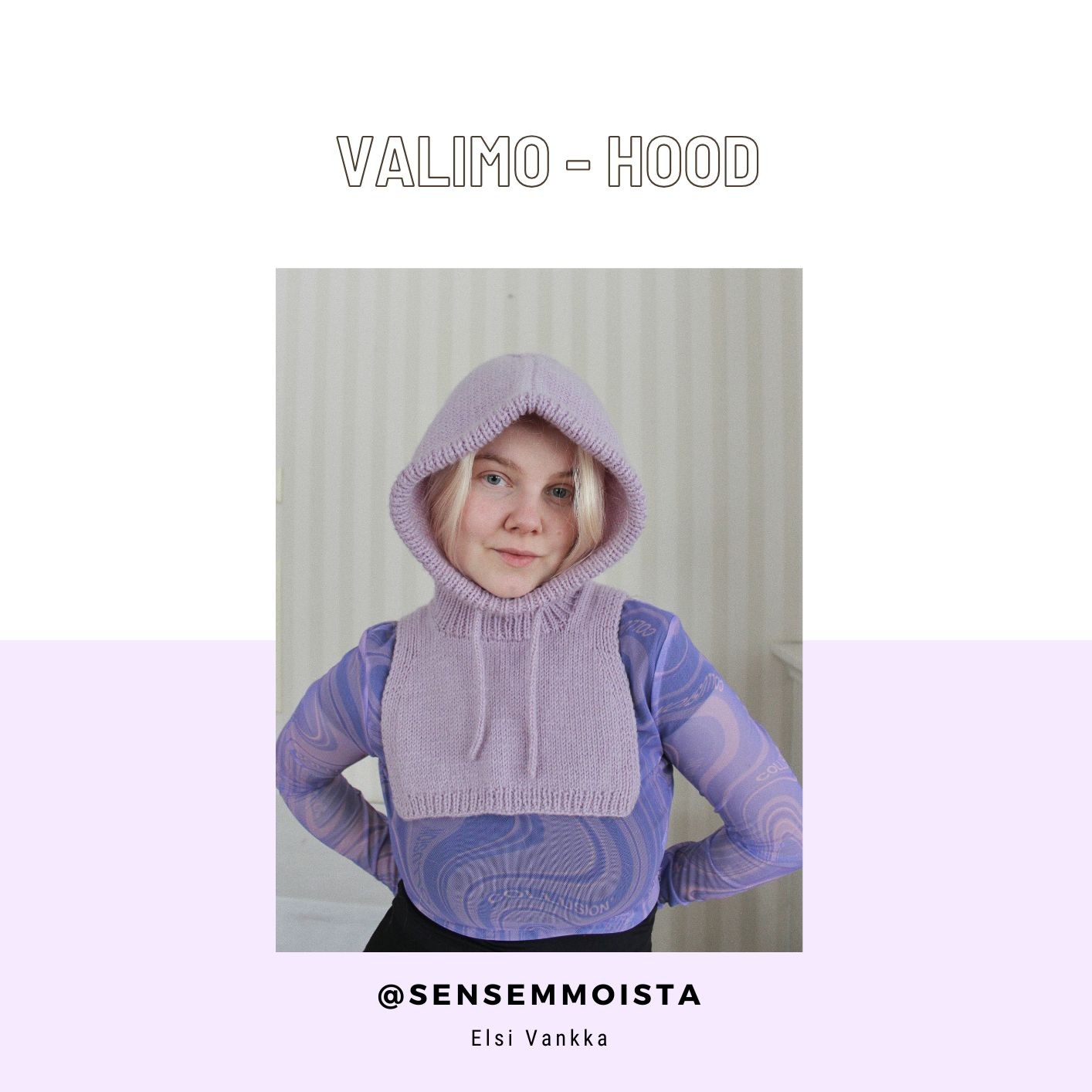 VALIMO - HOOD on hupun ja kaulurin yhdistelmä. Neule suojaa pään lisäksi sekä niskan että kaulan, ja on todella helppokäyttöinen talviasuste. Huppu neulotaan sileää neuletta tasona sekä 1 o 1 n joustinneuletta suljettuna neuleena kaulan kohdalta. Naama-aukkoon neulotaan i-cord nyöri, jolla aukon suuruutta voi säätää.
